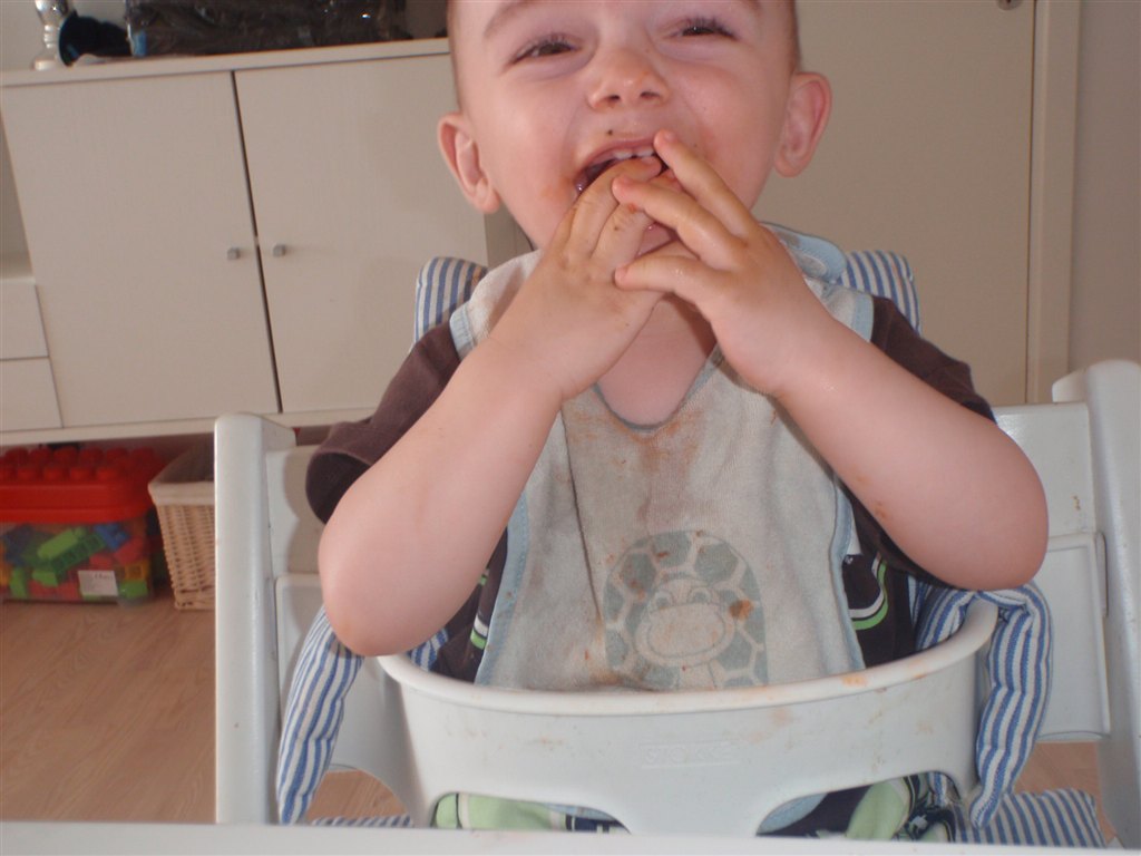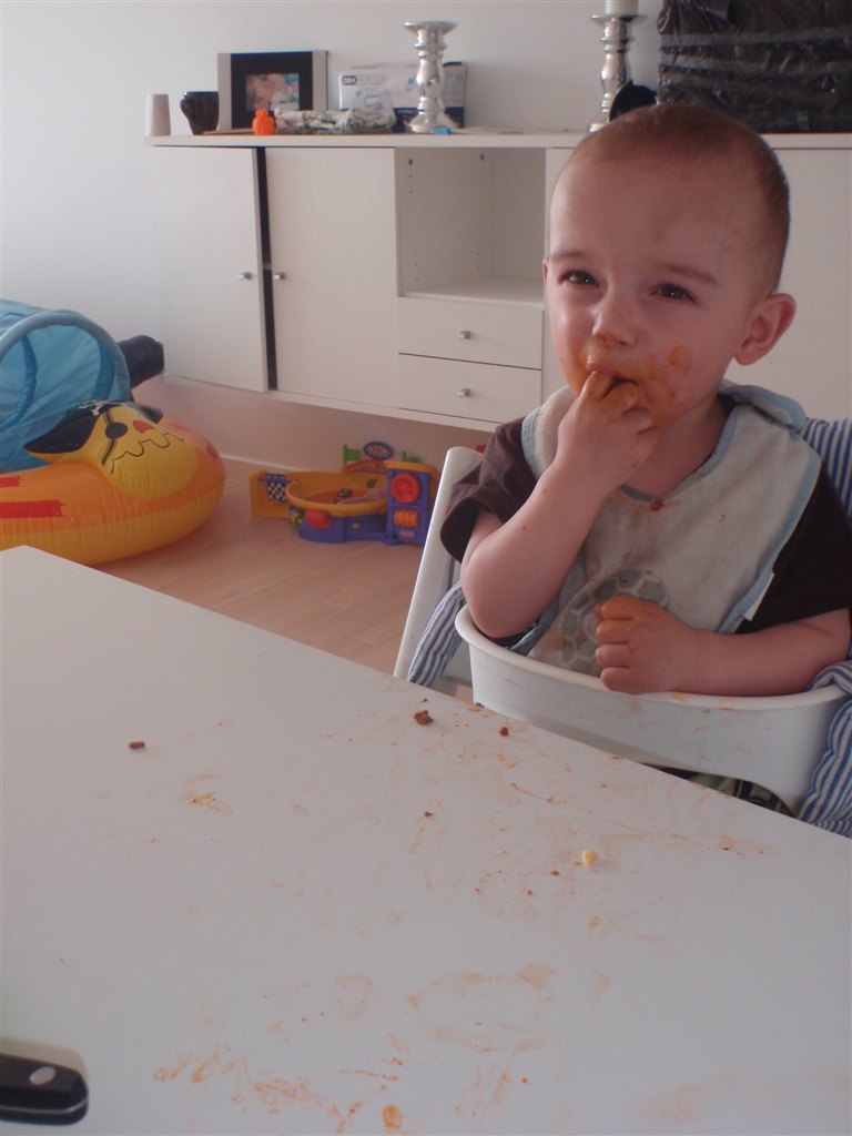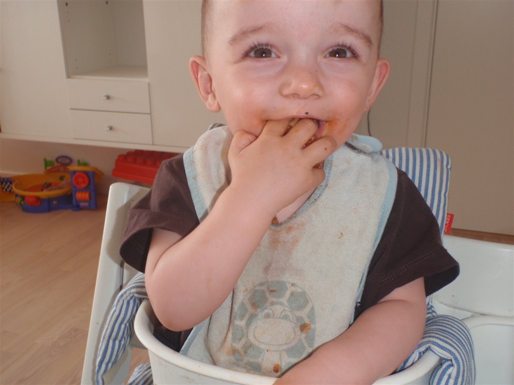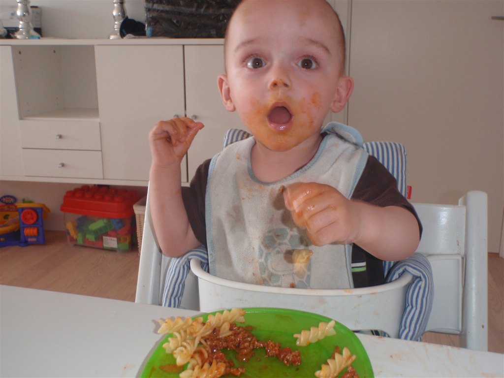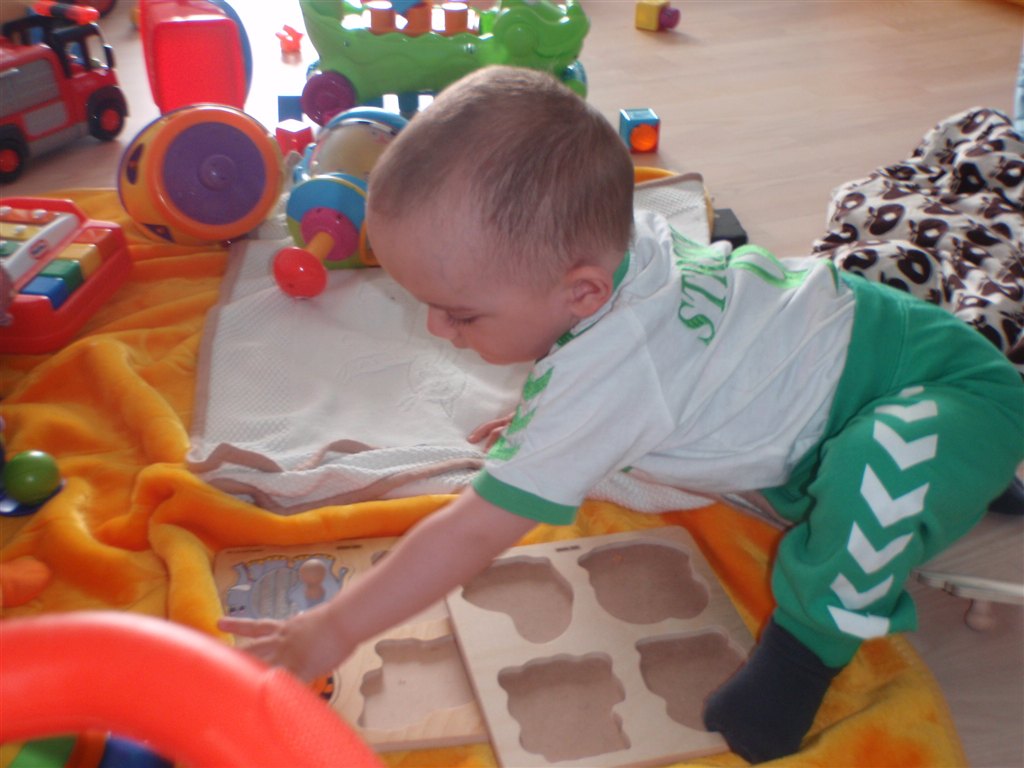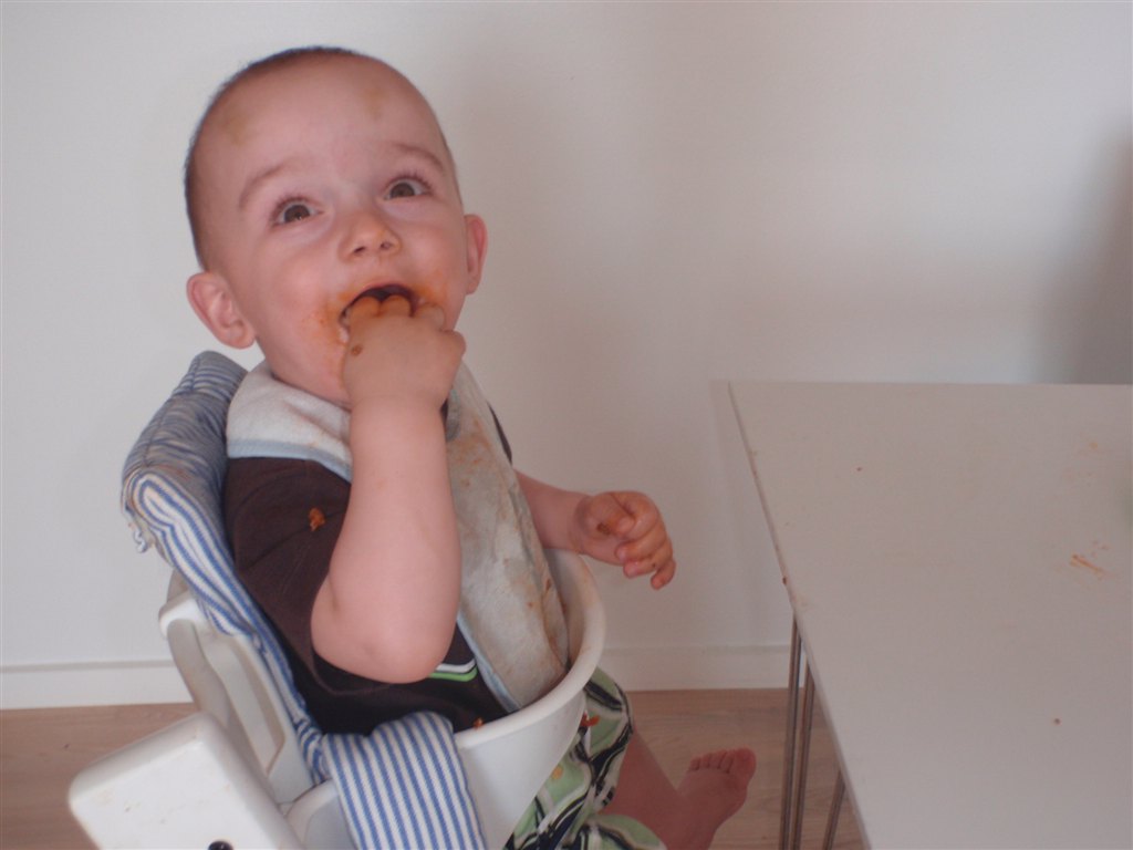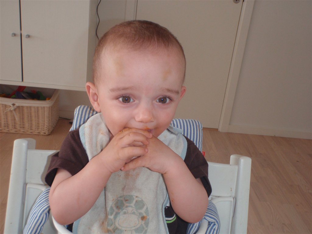 Han klapper, siger mama, baba, og rigtig godt til at fortælle hvad han vil ( ved at pege rundt på alting )