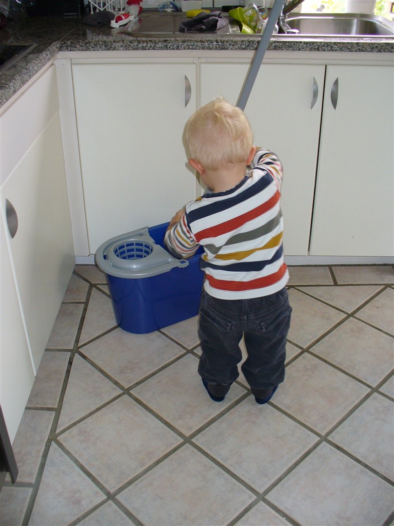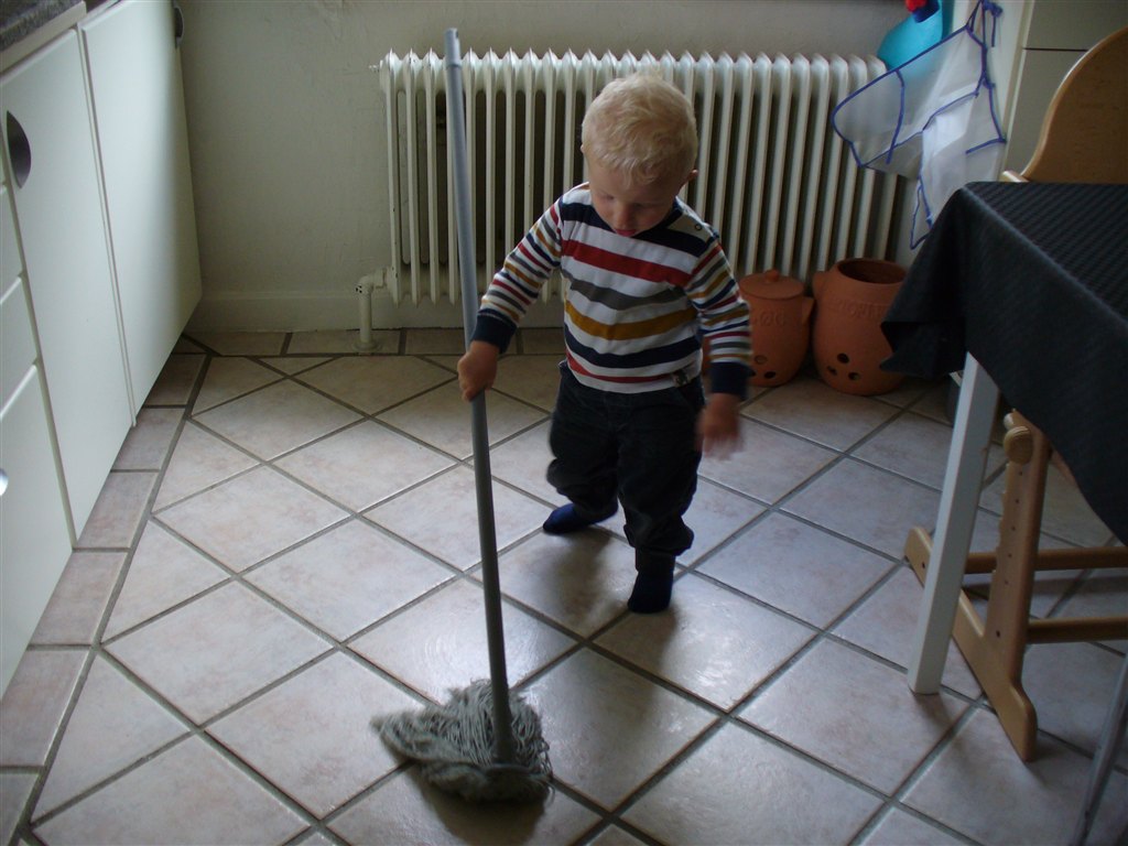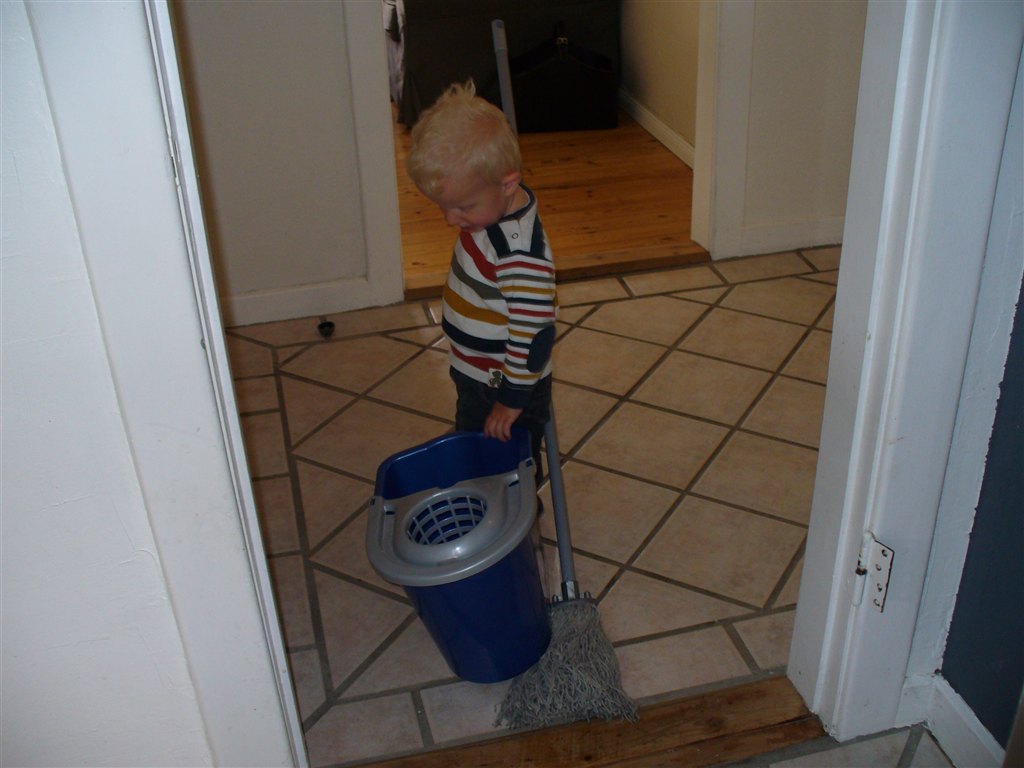 Daniel syntes lige han skulle hjælpe mor med at vaske gulv