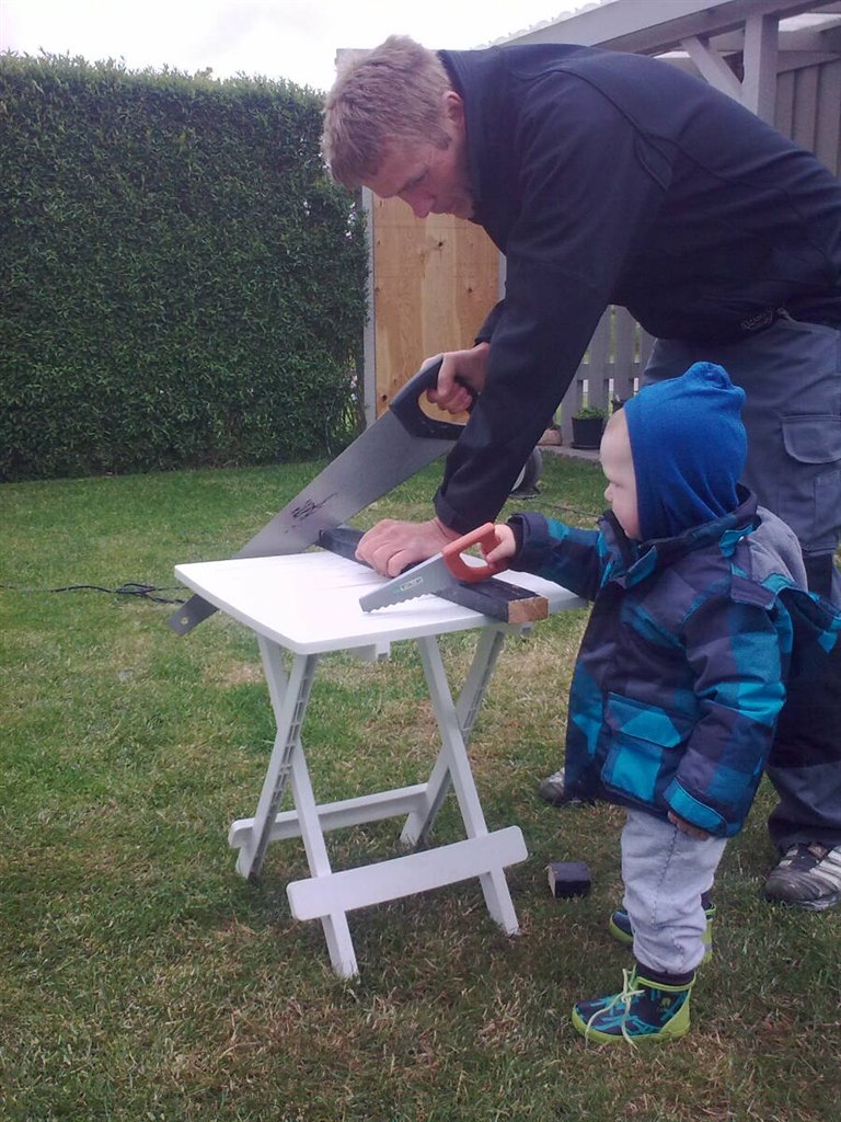 STN skriver: haha.... hvor er det godt! Sådan kommer vores bebse også til at stå med min far! han er maler, men laver alt selv, også tømre-ting og det hele, så det er så fint, at de vil lære fra sig og vise børnebørnene forskellige ting.... det er hygge!