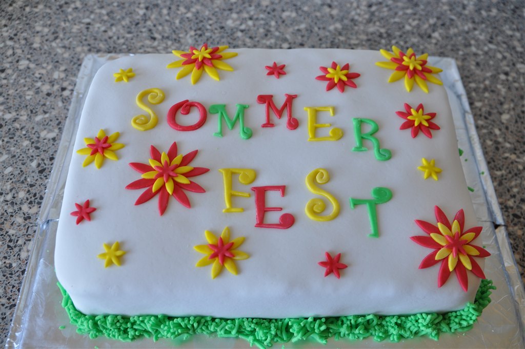 K&S skriver: I morgen står den på sommerfest med de skønne mødregruppe-piger, vores dejlige mænd og alle de fantastiske børn Og jeg skulle stå for kagen Kagen er med hjemmelavede lyse bunde, toblerone creme og bærsymfoni-mousse smurt op med chokolade-smørcreme og overtrukket med fondant Jeg har lige købt blomsterudstikkerne, så det er første gang, jeg prøver med blomster (men bestemt ikke sidste...!). Det er også først gang, jeg har forsøgt mig med græs, men det er jo sjoooovt...! Det er derimod SIDSTE gang, jeg skriver noget med bogstavet M -det drillede simpelthen så meget, det ville slet slet ikke ud af udstikkeren og gik i stykker 100 gange inden det lykkedes mig at lave 2 styks Og så lige lidt billeder, jeg er selv meget stolt...!