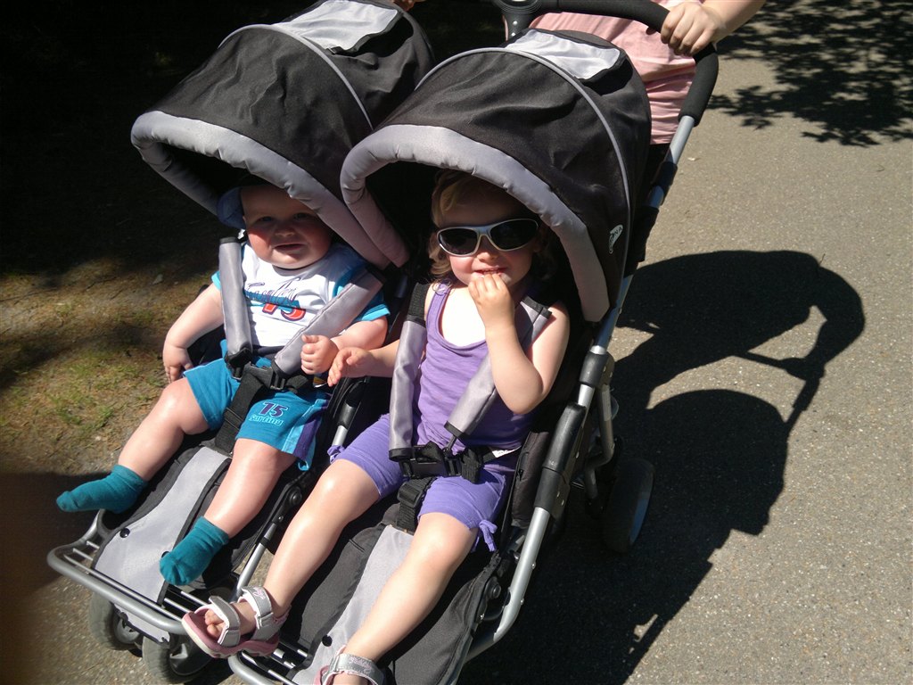 igår havde asta en kort ærmet body på og et par lang bukser og bare tær og sandaler og solhat og en masse solcreme.