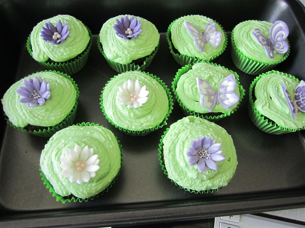 Det er chokolade og med chokoladestykker i .. Og så er det hvid chokoladecreme med grøn farve i (;