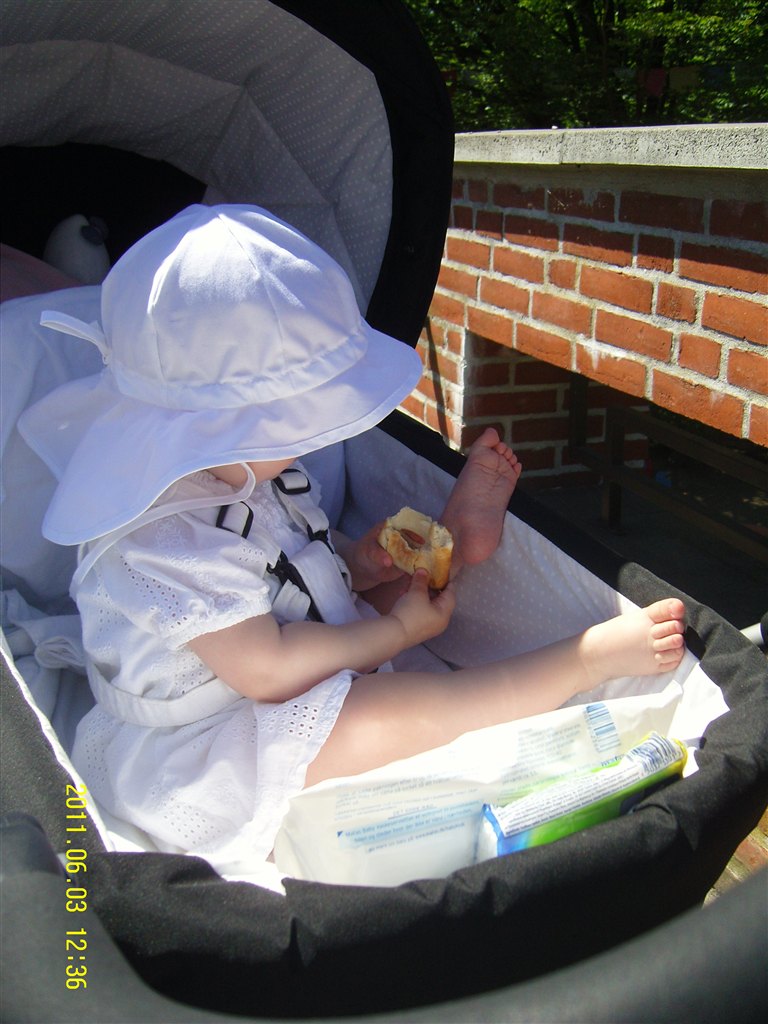 Hun går ikke endnu, da hun har problemer med sit bækken som har siddet forkert, men hun gør store fremskridt efter hvert besøg hos kiropraktoren, så det skal nok gå