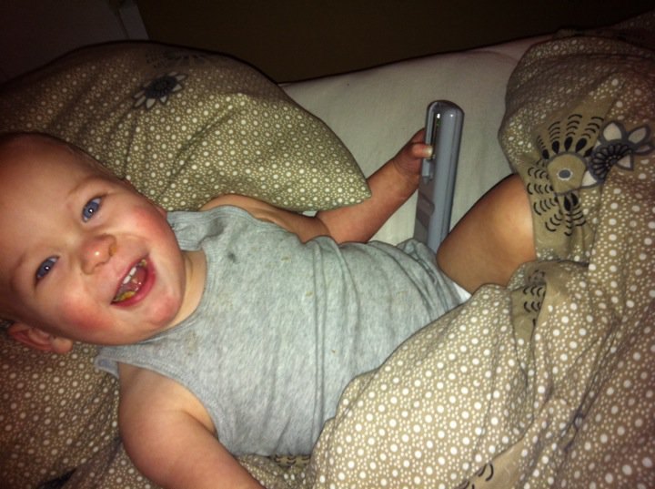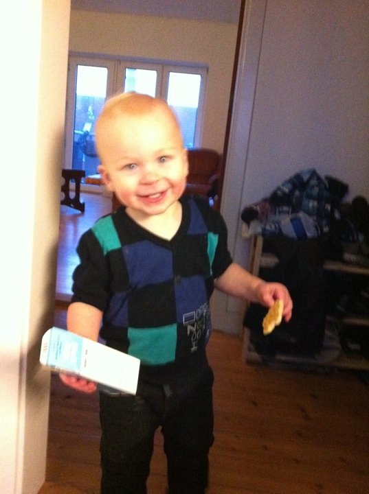 Nicolai er nu lige knap 20 måneder og en stor dreng der har fuld fart på fra morgen til aften.. Sproget er for alvor begyndt at komme, og munden kører uafbrudt på ham