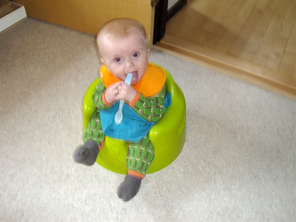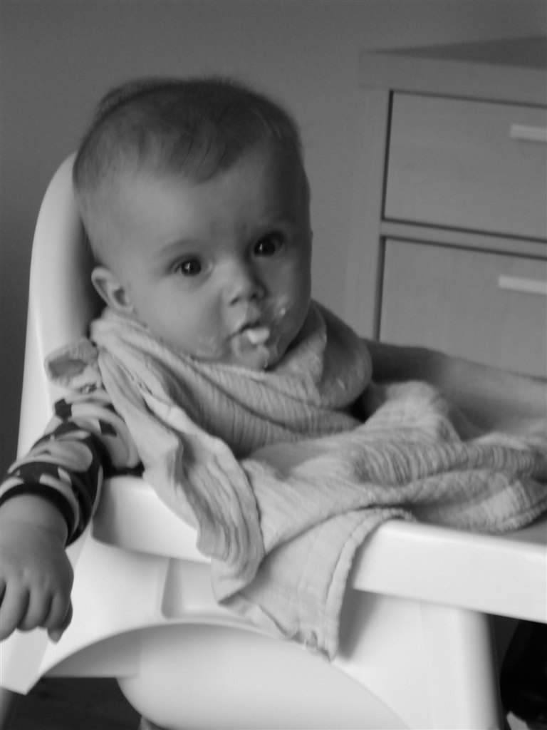 Ja moren synes jo klart han er den lækreste baby ever selv med grød i hele femøren.