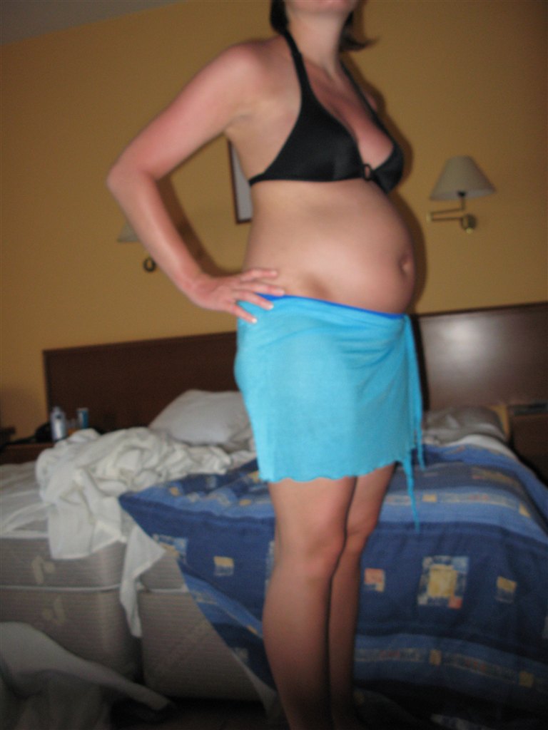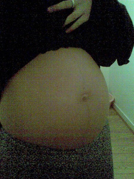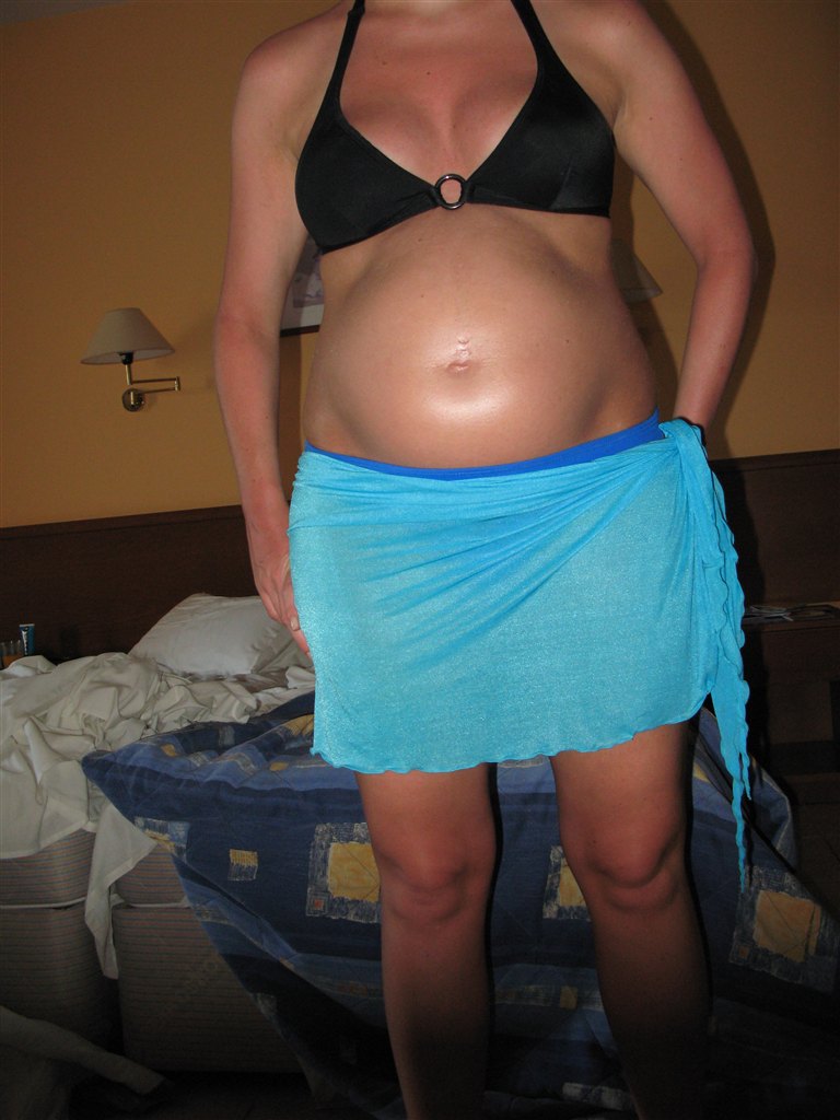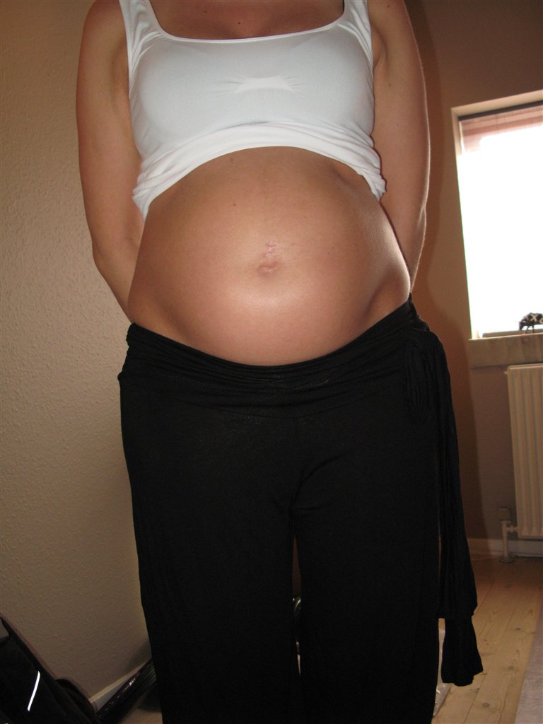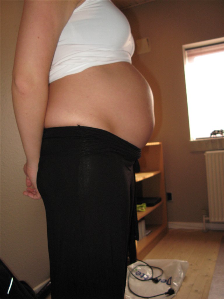 Jeg har ikke noget billede af mig selv lige i den periode af graviditeten.. Jeg lignede bare en som var vildt oppustet og forstoppet! Følte mig slet ikke lækker, og man så faktiskt ikke at jeg var gravid, kun fed, før ca. uge 26-27. Men jeg gik i bikini alligevel!
