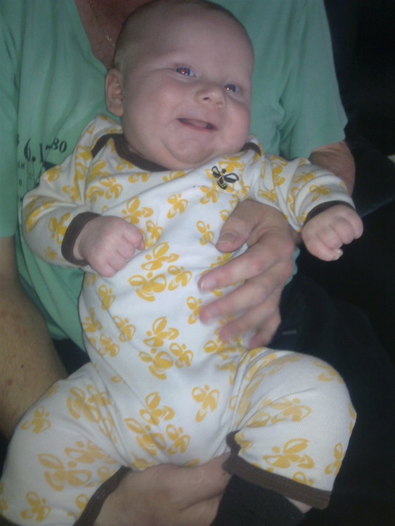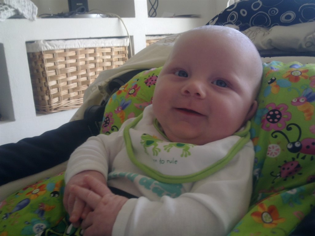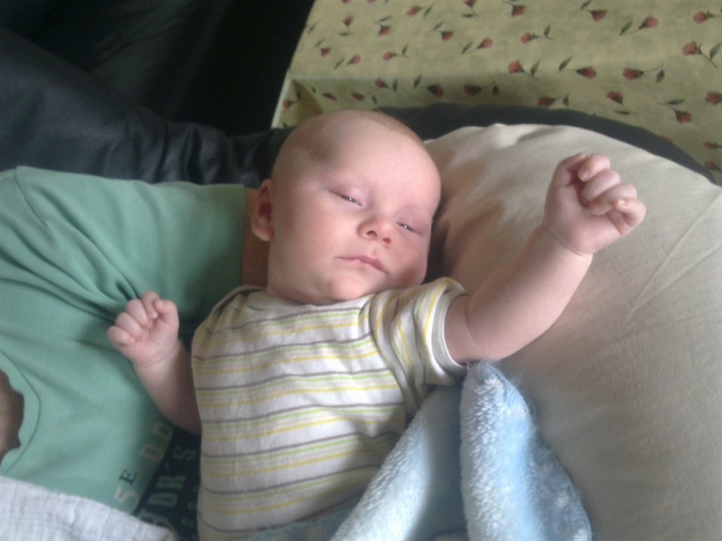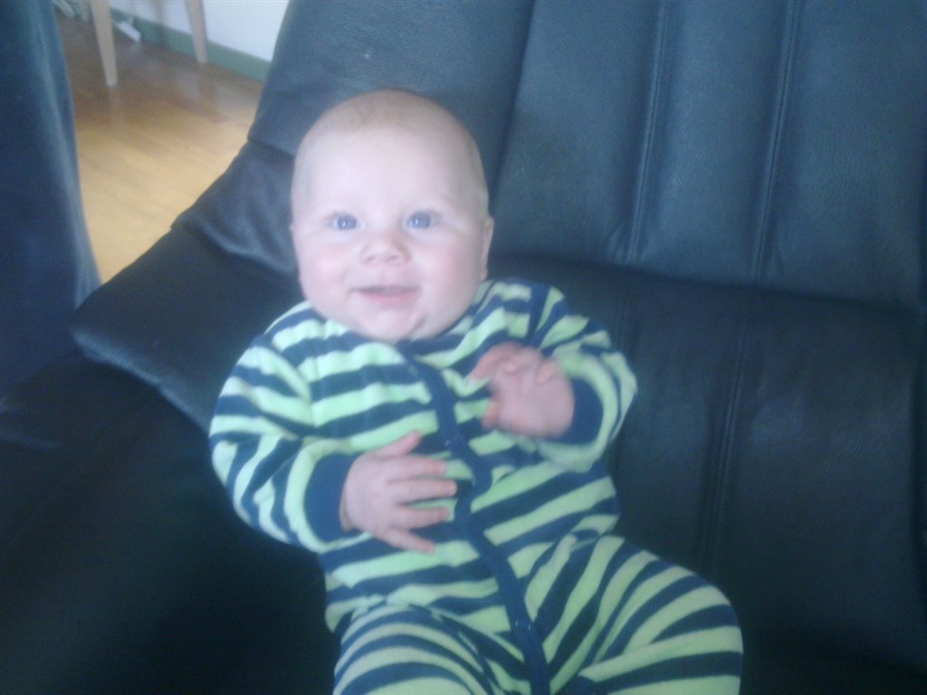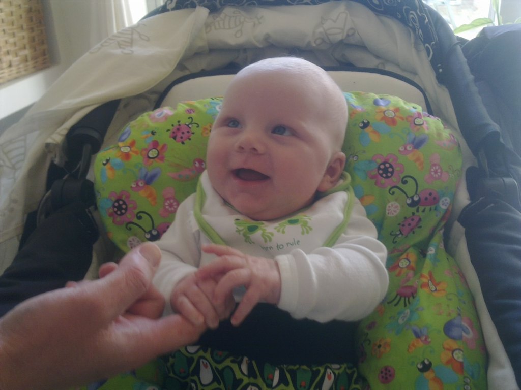 Han holder hovedet næsten perfekt nu, og elsker at ligge på maven i perioder.