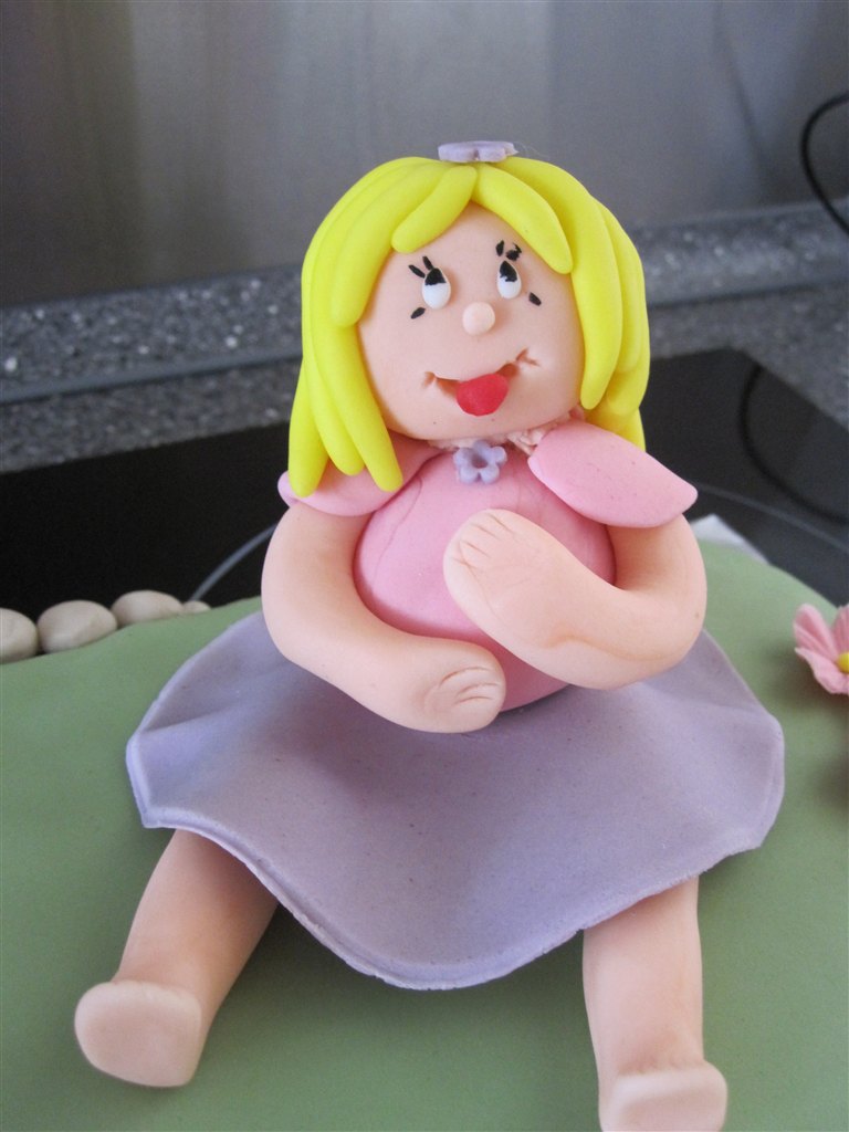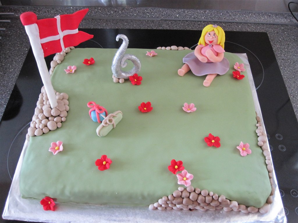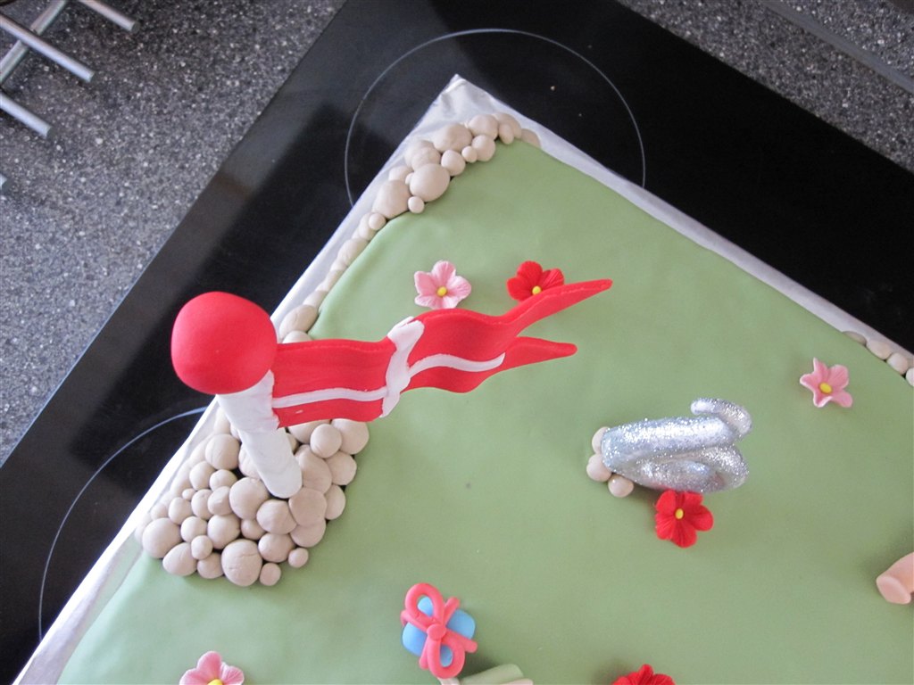 Så blev det tid til at lave min 1. fondant pige og jeg prøvede dermed også at lave et flag som skulle være på kagen...