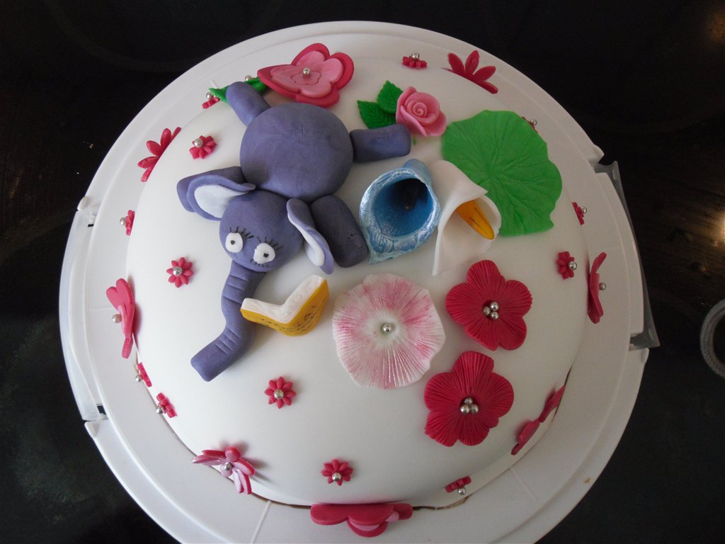Kagerne er ens, fyldet er tobleronecreme og hindbærmousse, smurt op med UCF, overtrukket og pyntet med mmf. Jeg har tyvstjålet Polkapriks elefant, da jeg synes de er så søde, så jeg ville prøve og lave dem selv.