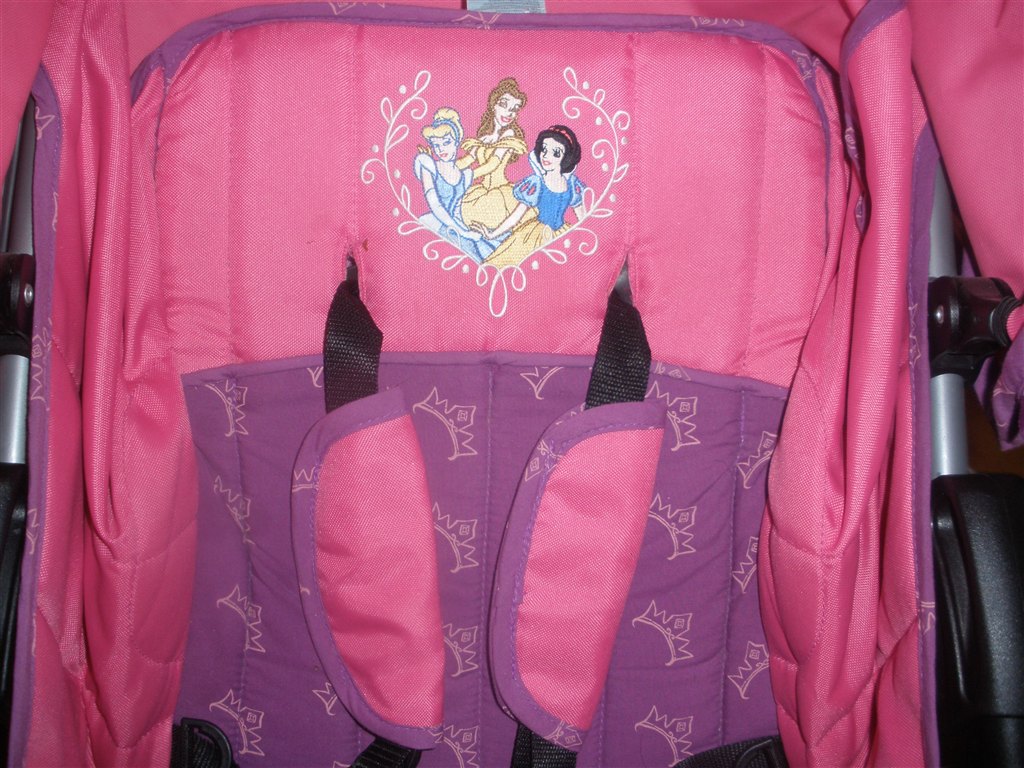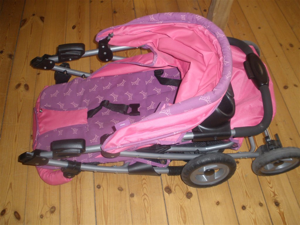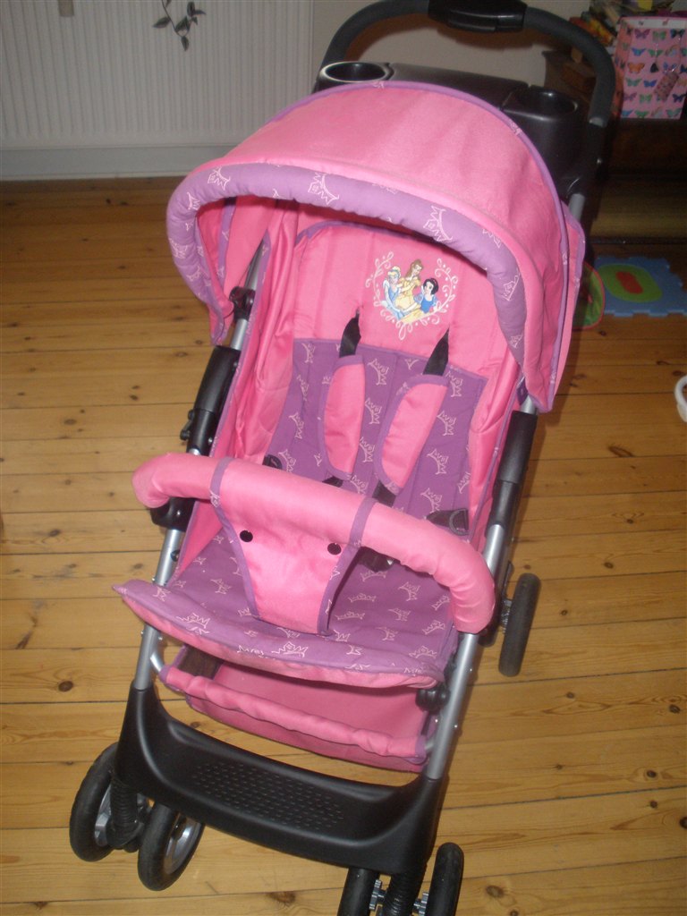 Lyserød / lilla Disney klapvogn, kaleche, sele, varekurv,