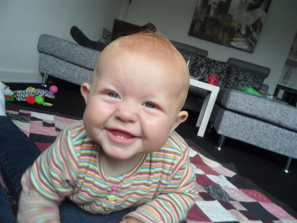 wow hvor er hun en dejlig lille nuser pige hun er da bare for sød hold op hun er skøn sikke en smuk pige, og hvor er hun sej, så skal mor og far snart passe på for så er hun snart i alt
