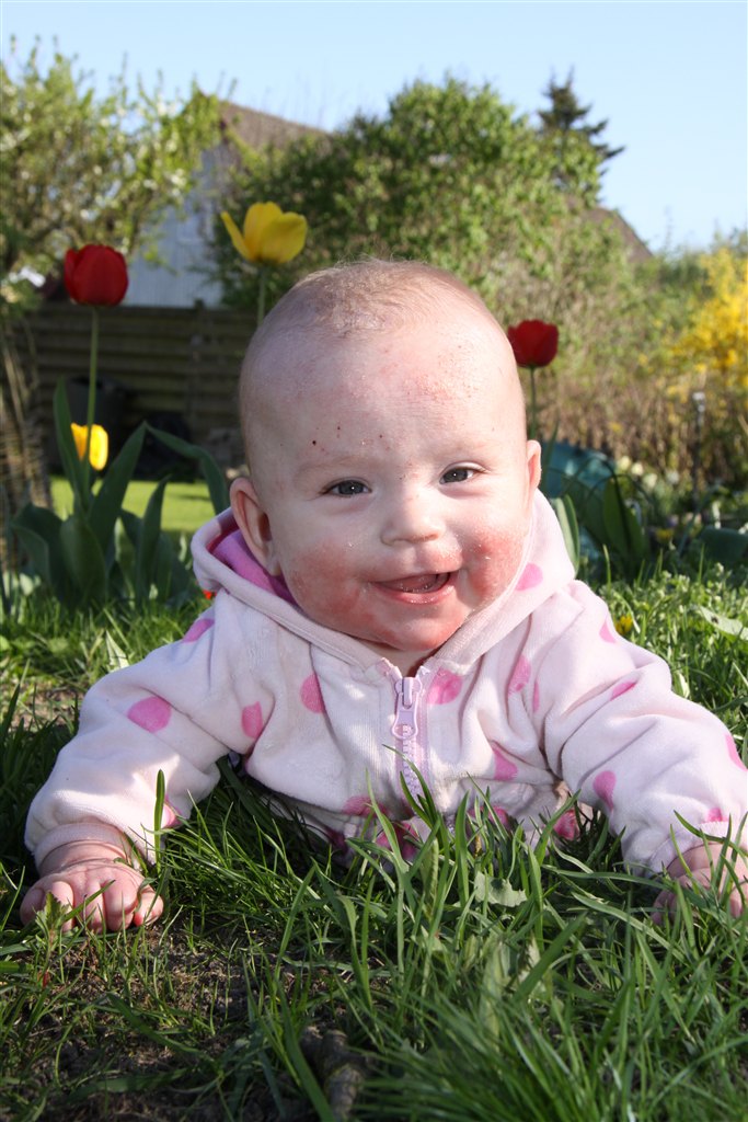 Hun er en lille en på 6,8 kg og 67 cm (vejede 2,5 ved fødslen og var 49 cm)