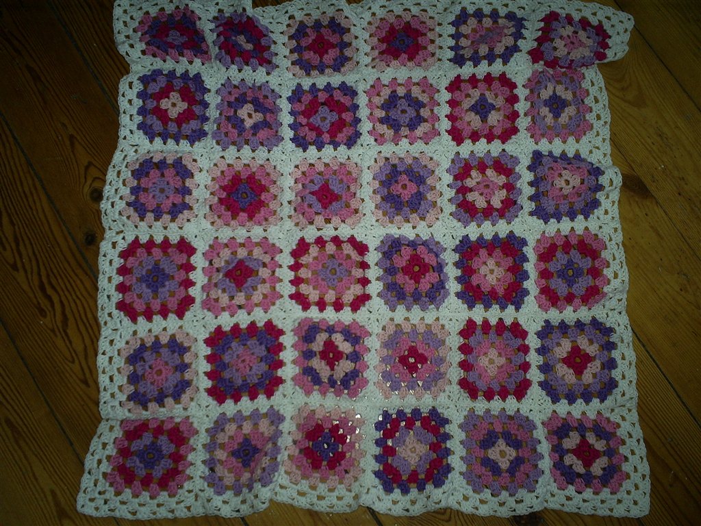 lækkert hjemmehæklet tæppe 100% bommuld