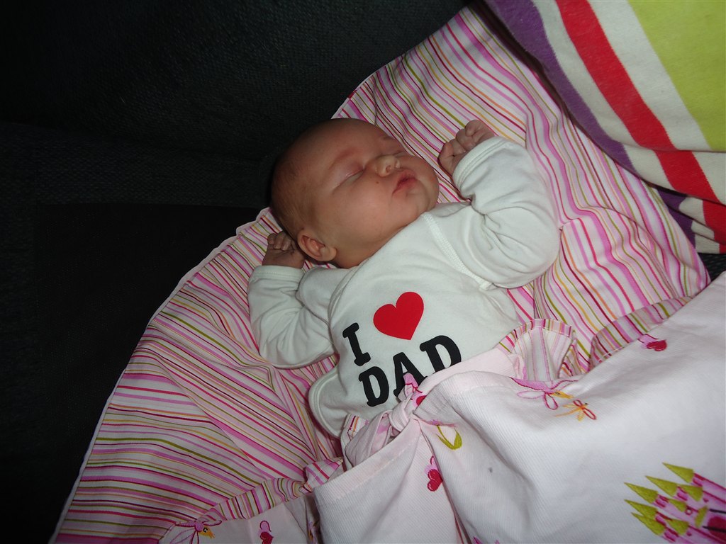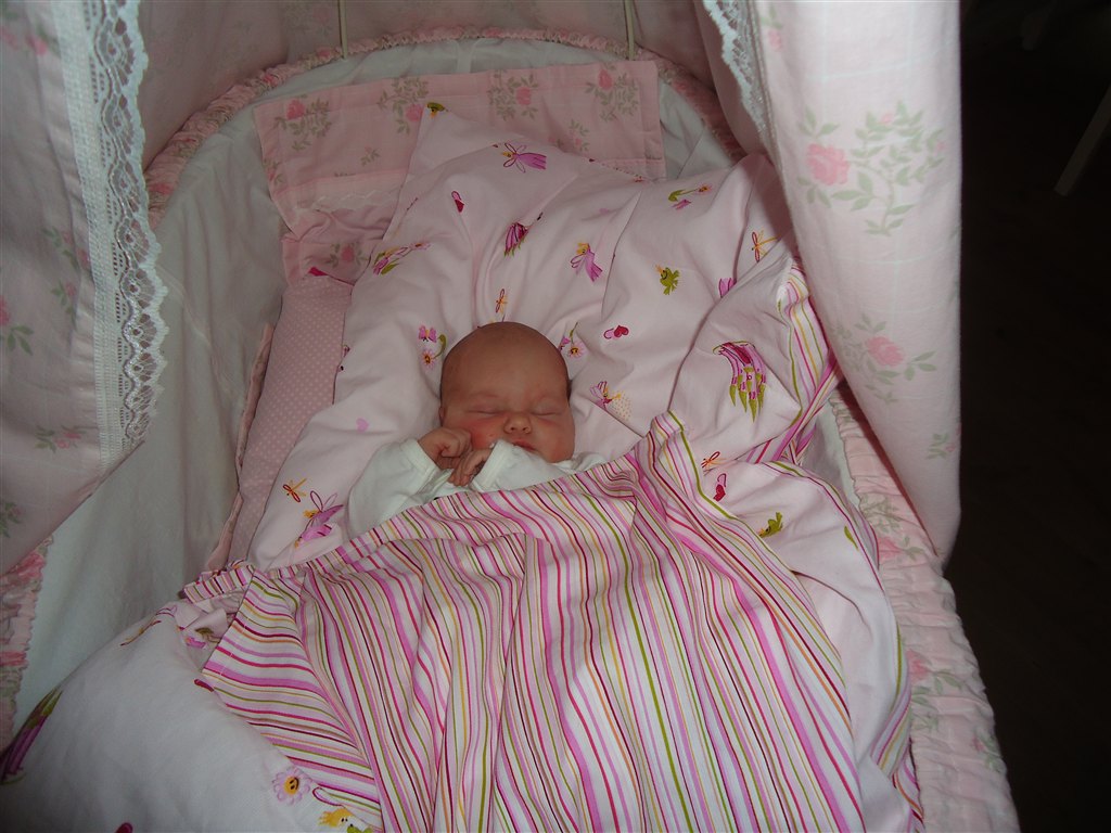 Hun er ude og gå tur i barnevognen hver dag, og sover til middag udenfor, hun elsker det og kan sove flere timer uden brok og vil så ellers bare spise når hun er vågnet, hun er så dygtig