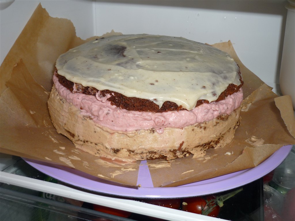 Det lyse er noget cream cheese. (UHMMM) som jeg har smurt hele kagen op med, fik bare ikke lige noget billede af den, da den hele var smurt op