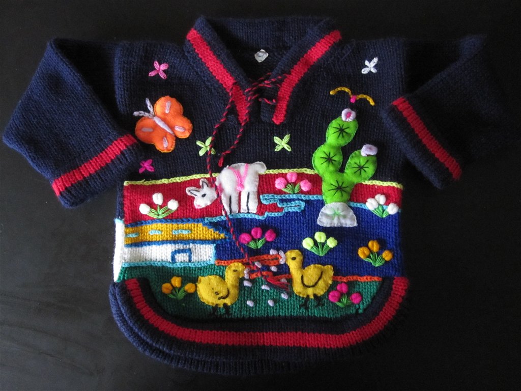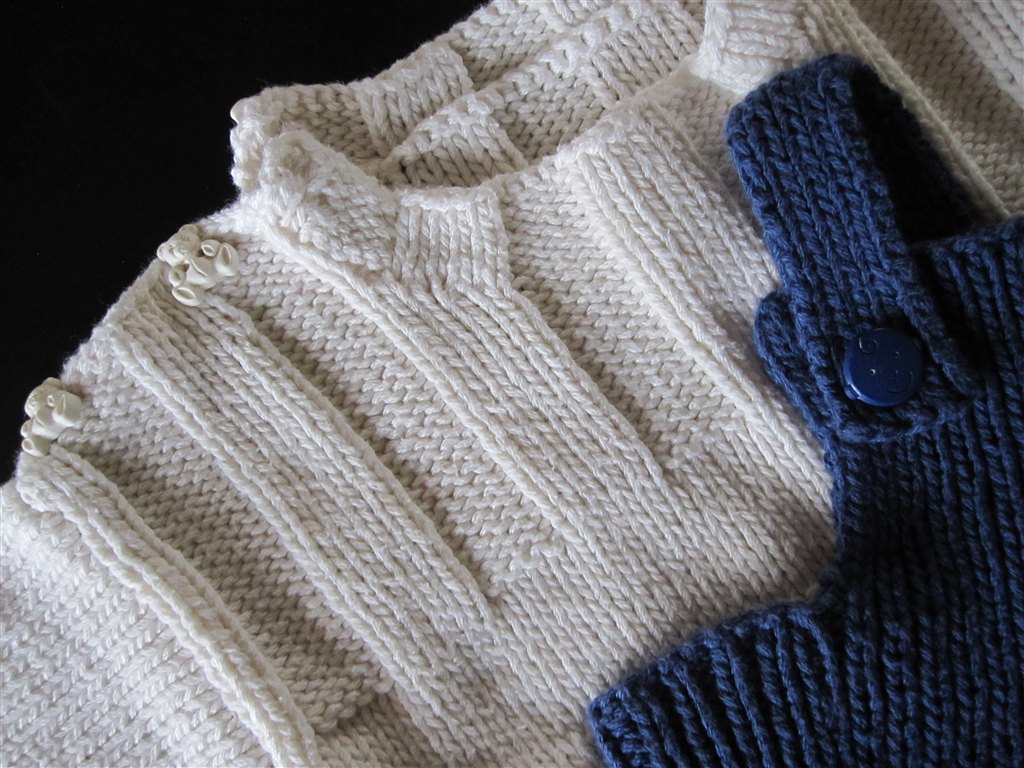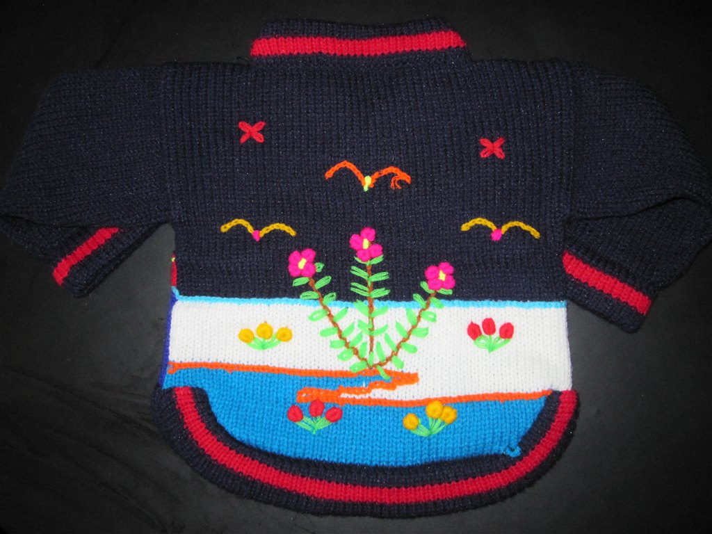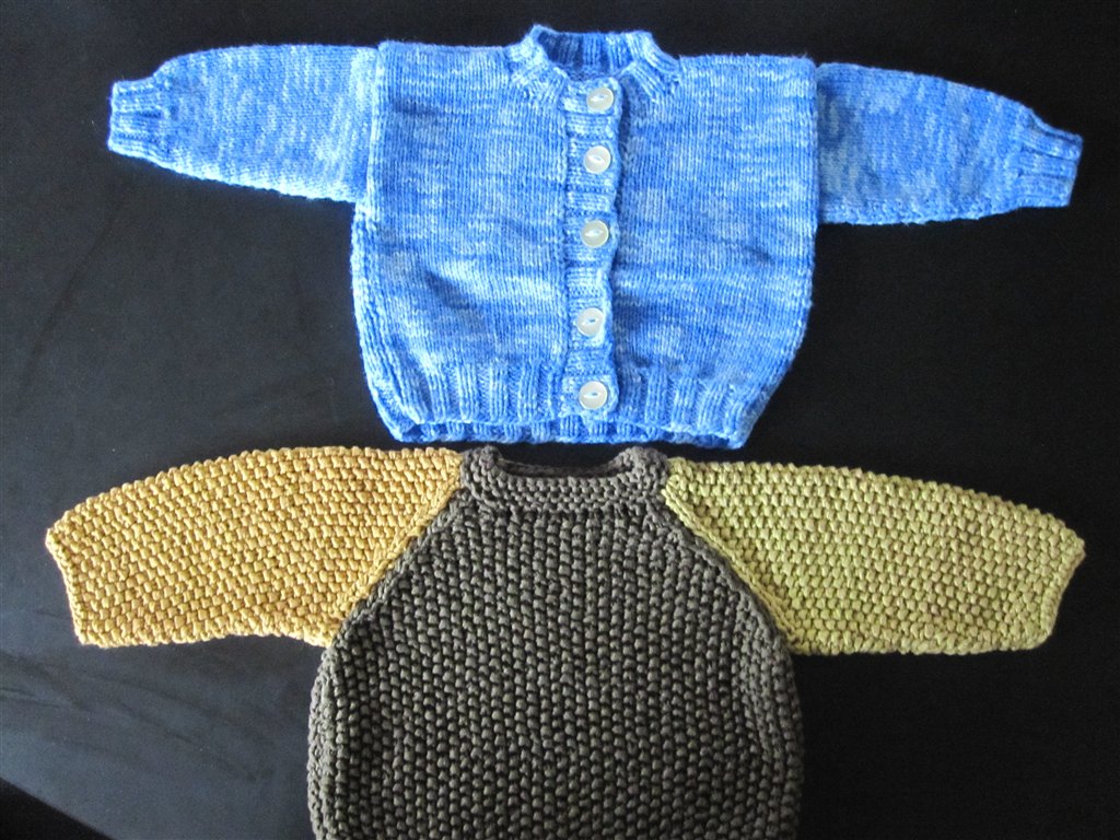 Billed 3, 2 søde striktrøjer, ikke mærket med str. da det er modeller købt i en strikkeforretning, vil sige str. 62 måske lidt større, 50 kr. for begge.