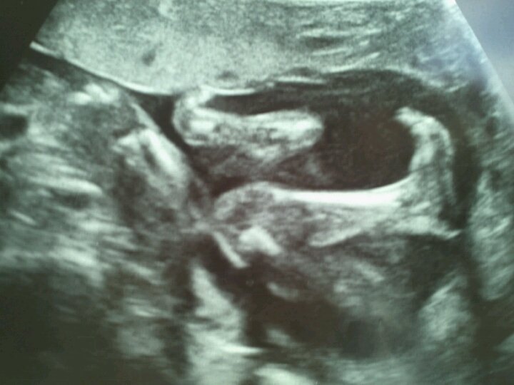 Alt så fint ud, det hele var som det skulle være. h*n lå og moslede rundt derinde, og kunne endda mærke det lige så tydeligt. det var så vildt. - far og mormor stod spændt og kiggede med, mens jeg lå og tudede til hjertelyd og små føder + spark og skub.