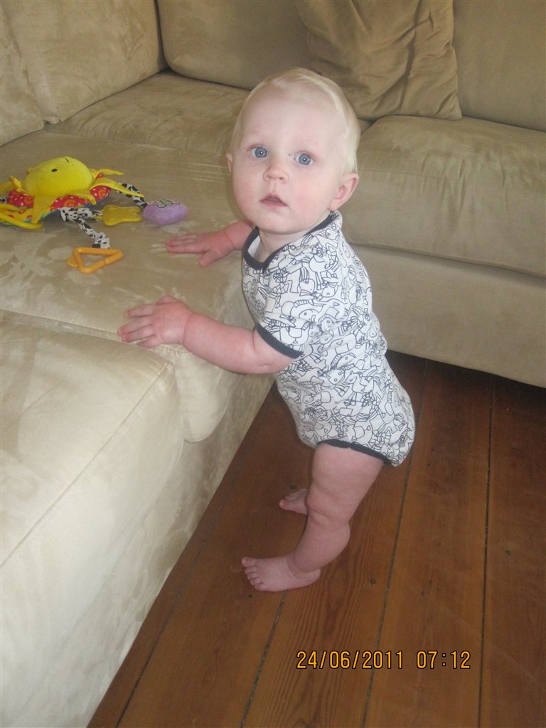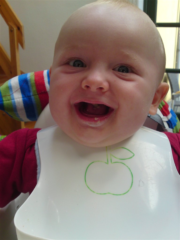 Han vejer 11 kg og måler ca. 76 cm nu. Så han er en stor og dejlig bøllemand. Han elsker ALT mad, og har fra start på rugbrød, mos og grød bare taget godt imod det hele - skønt