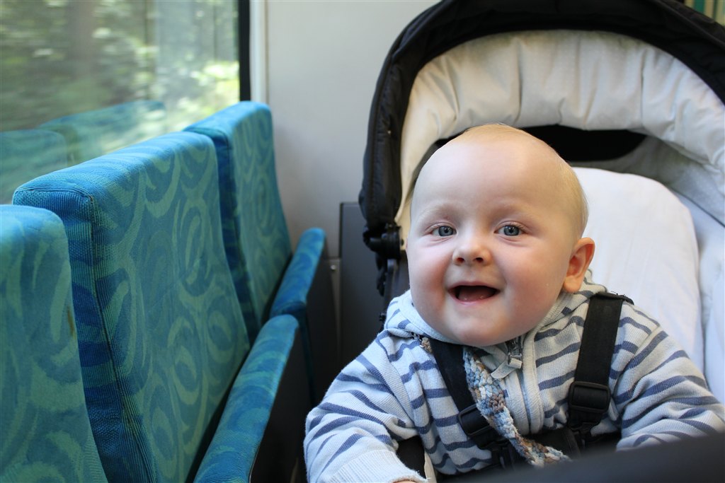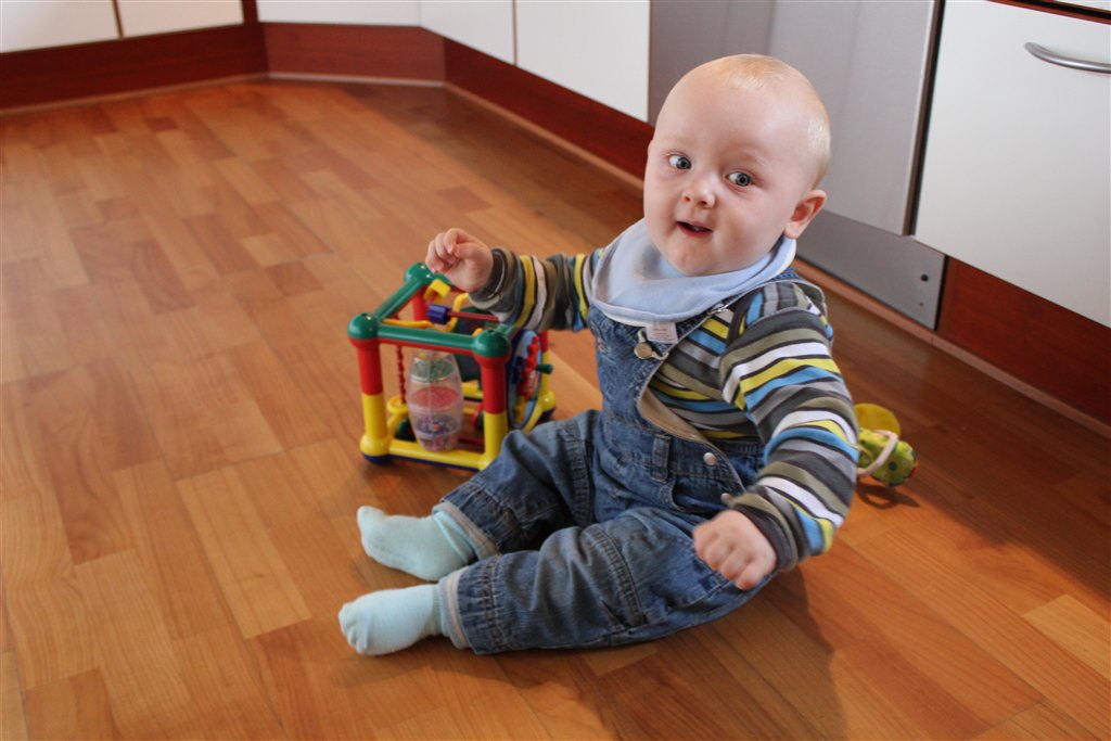 Han sidder rigtig godt selv, og elsker at kunne lege med ting siddende.