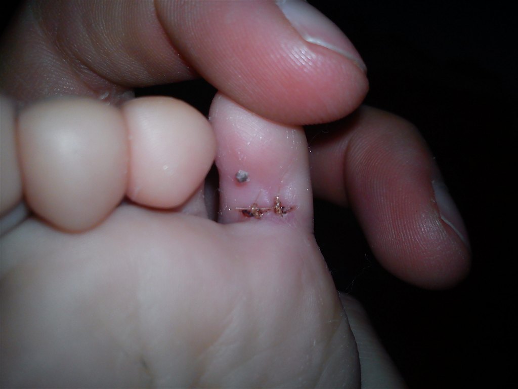 Pilled begge hans forbininger af i torsdags og opdaged at der var en smule betændelse i den højre tå, den har været grim og åben siden mandag...