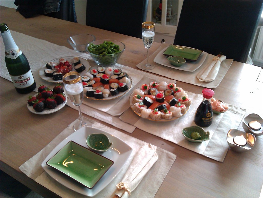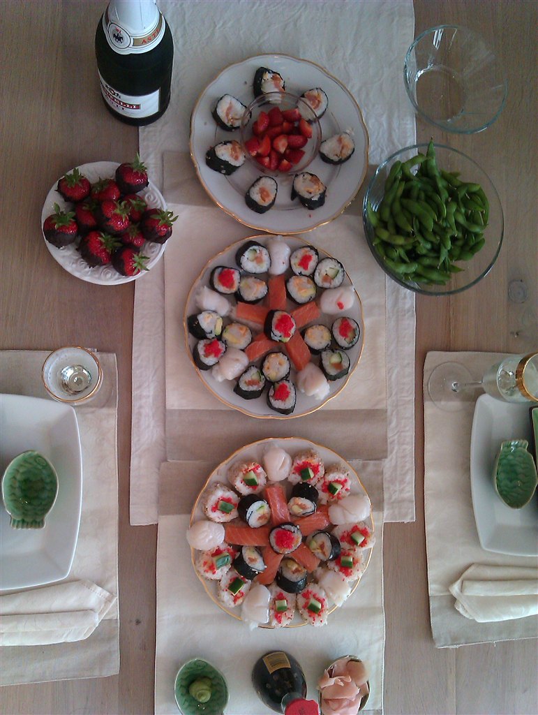 Hjemmelavet sushi.....senere i aften står menuen på Asti og jordbær med mørk chokolade