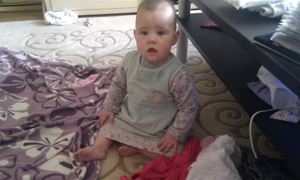 Billedet hvor Isabella har den på (hende der står op), er taget da hun var over et år gammel