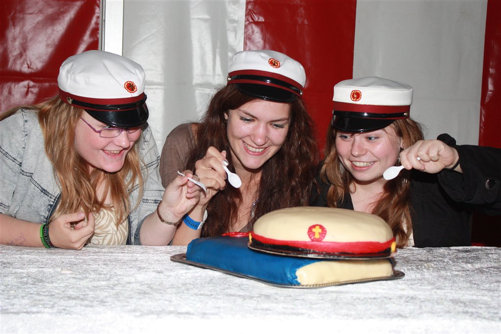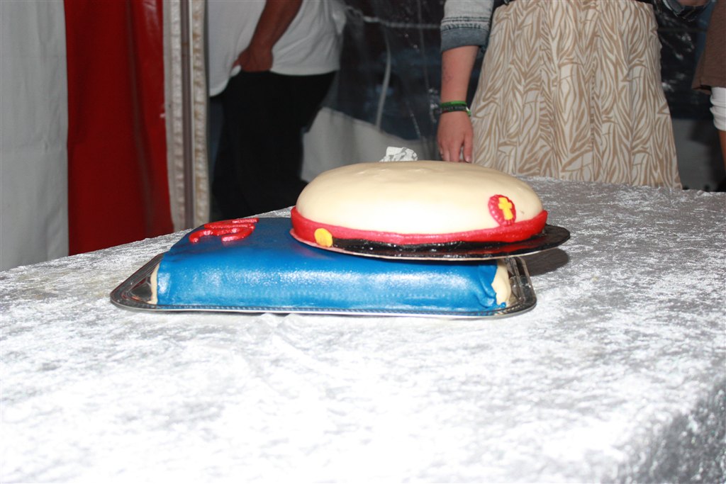 den skulle have været brugt fredag da klassen holdte fest men de var rimelig pløret så vi besluttede at vente til igår hvor min søster holdt hendes studenterfest. den var nødt til at stå natten over i et køleskab der danner en del kondens derfor den glinsende overflade.