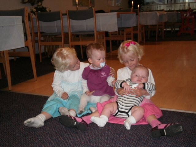 Så fik vi også lige samlet Silas sammen med hans kusiner, Lærke som er 14 mdr og Jeanette og Sofie som er 4 år..