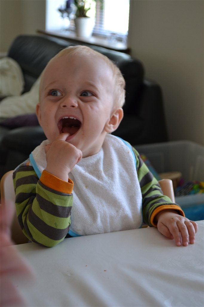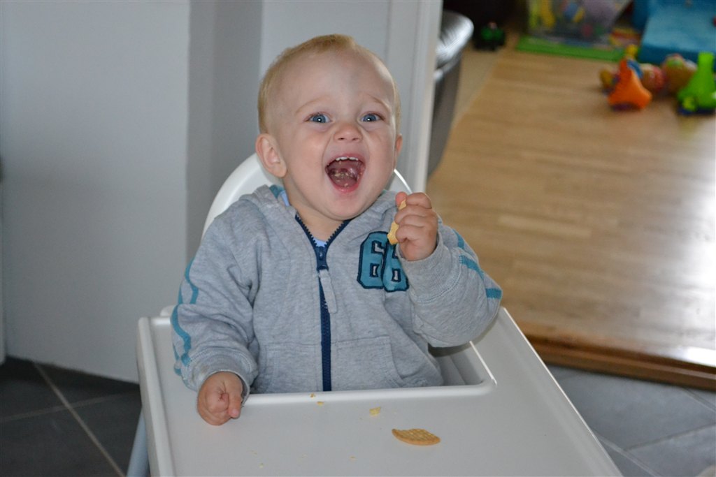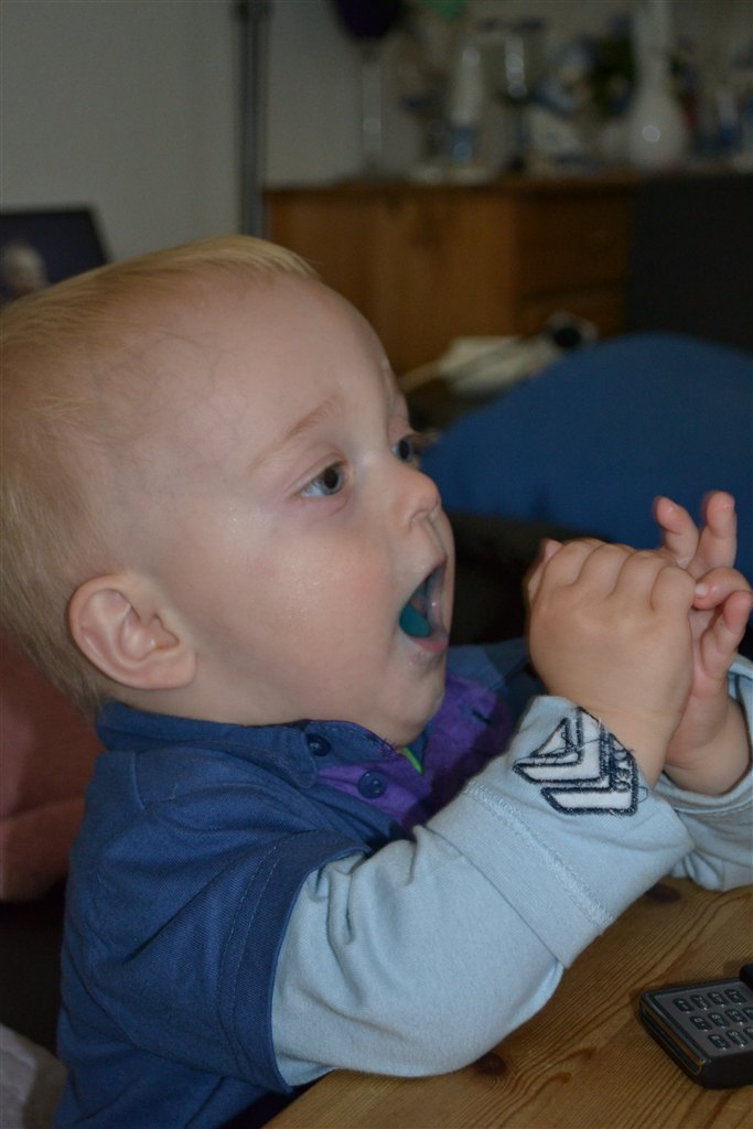 Sad så inde ved ham mens han sov..... og han sov.... og han sov... det tog 20 minutter før han gad at vågne, og han vågnede og sagde "A DET".. var lidt omtumlet, men blev pisse sur på mig fordi han ikke måtte komme ned på gulvet og lege