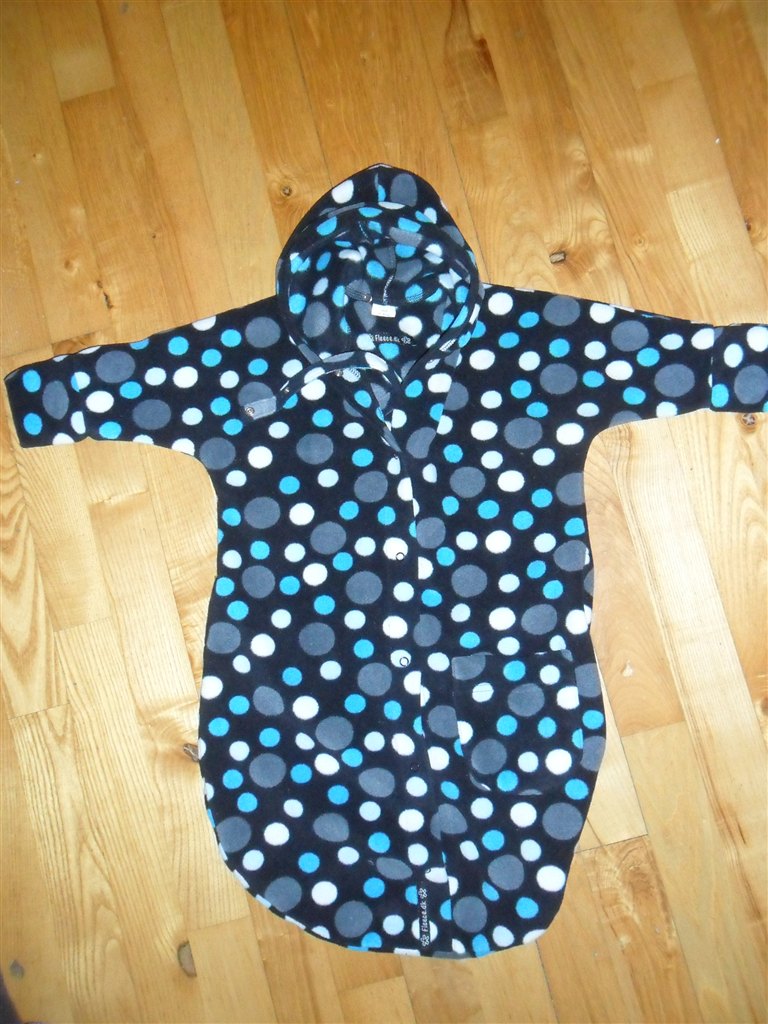 Multipose str 60-80 fra fleece.dk. Har indbyggede vanter og suttesnor 100 kr inkl porto