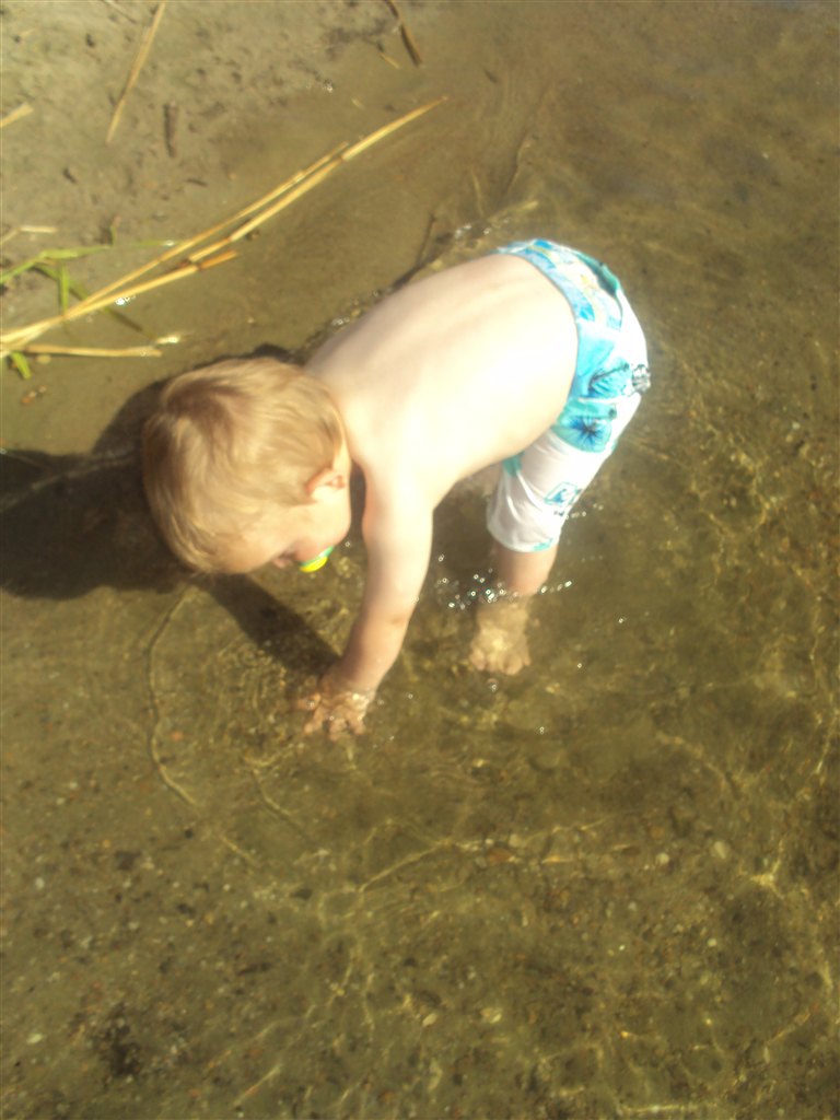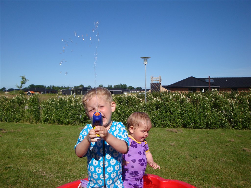 Takker - ja han hygge sig helt vildt - Dog mistede han balancen i vandet og faldt bagover - Så blev hvis lidt forskrækket...