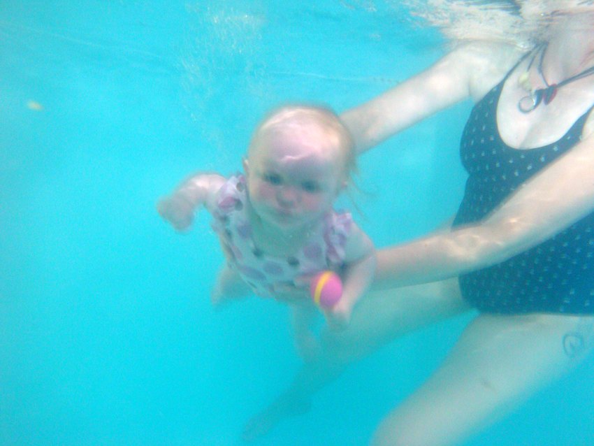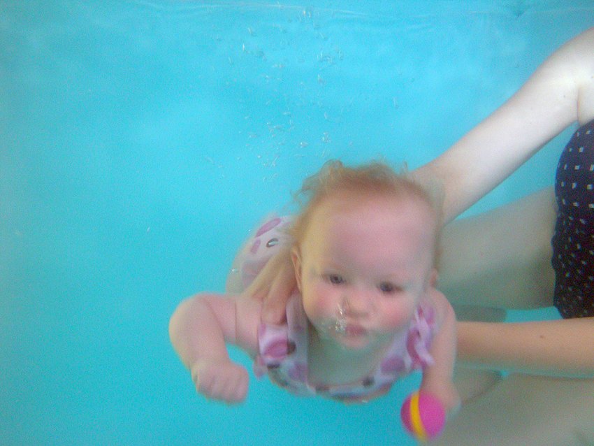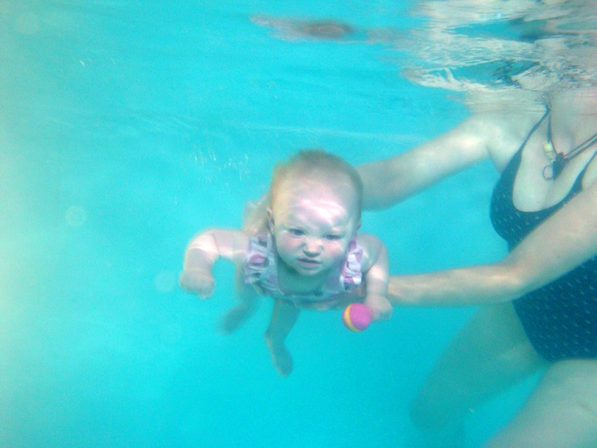 Så elsker hun at plaske og lave babysvømme bevægelser med hendes små tykke lamselår.