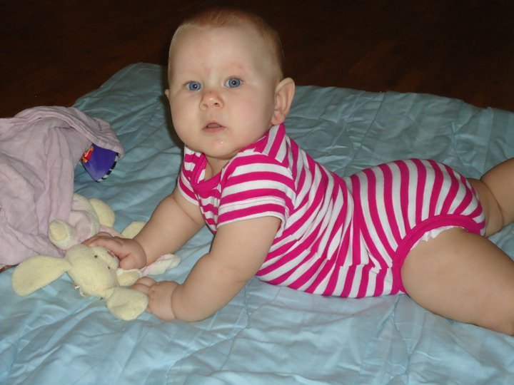 På onsdag kommer sundhedsplejersken igen, så jeg glæder mig meget til at se hvad hun efterhånden vejer, og hvor lang hun er blevet. Vi har ikke set hende siden 2. maj (8,2 kg og 68 lang).
