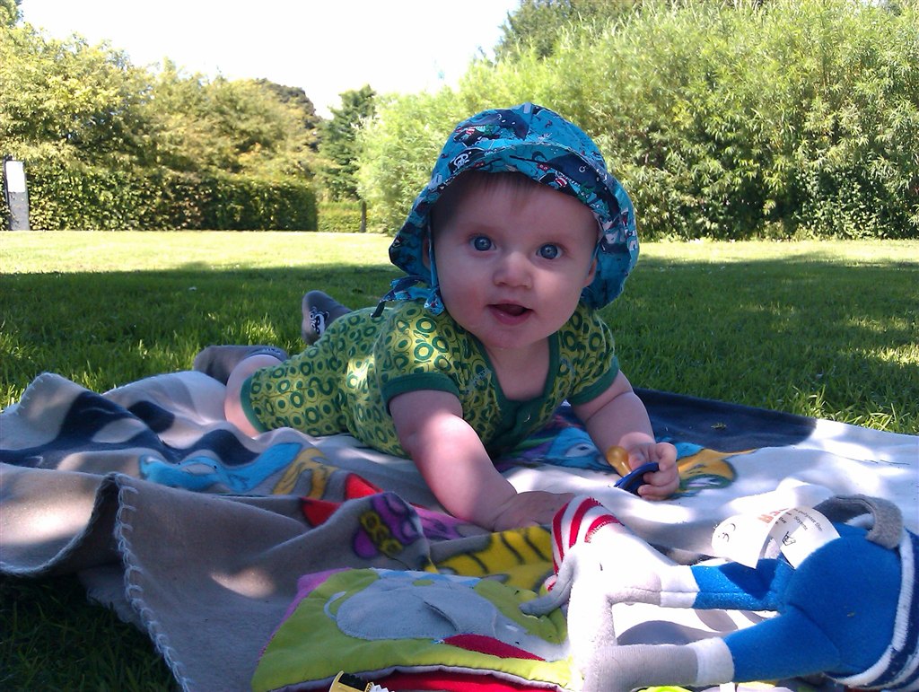 Han er helt hvidhåret, så han skal have en hat på for ikke at blive skoldet i hovedbunden