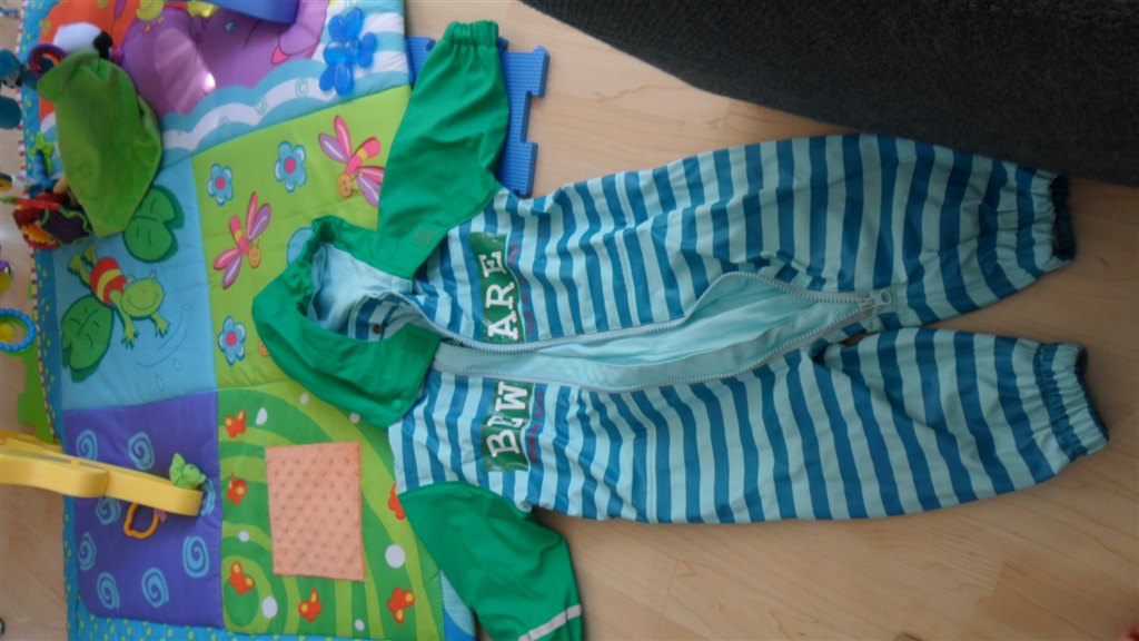 Han bruger str. 80 i tøj nu og hvis han skal have regntøj på, skal der jo også være plads til han kan have alm tøj på ..