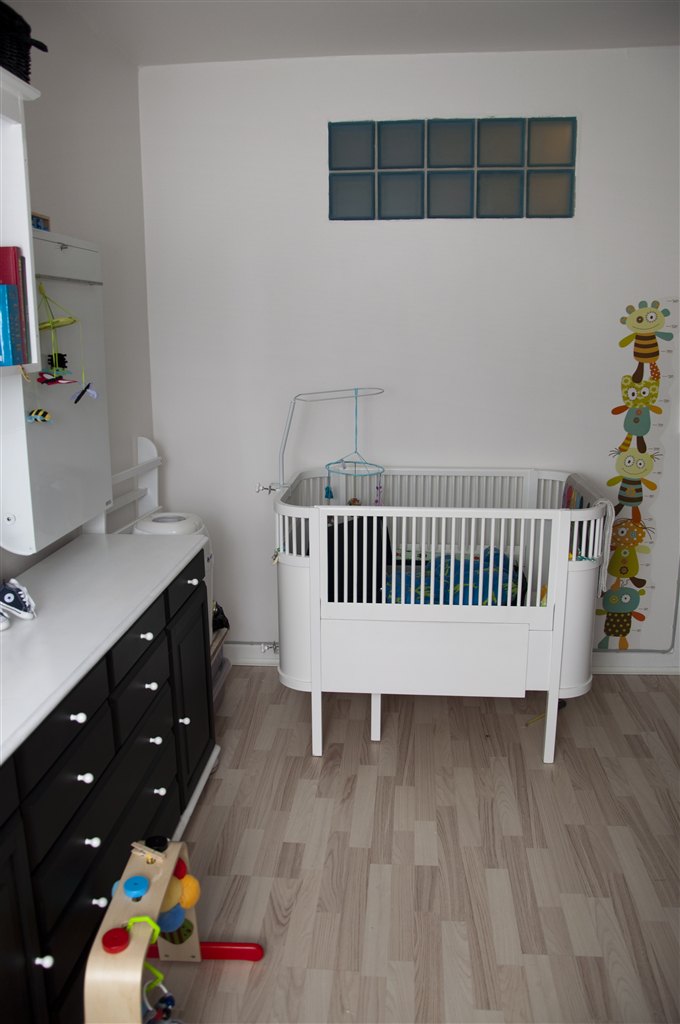Den modsatte side med puslebordet, som faktisk bare er vores skrivebord