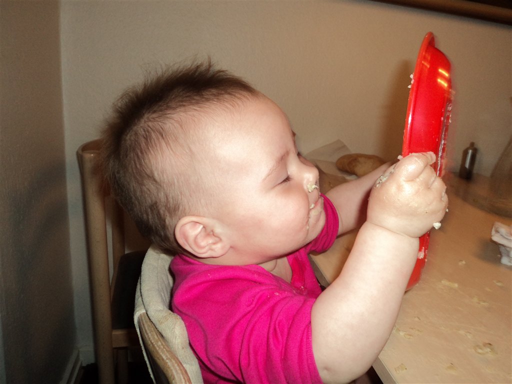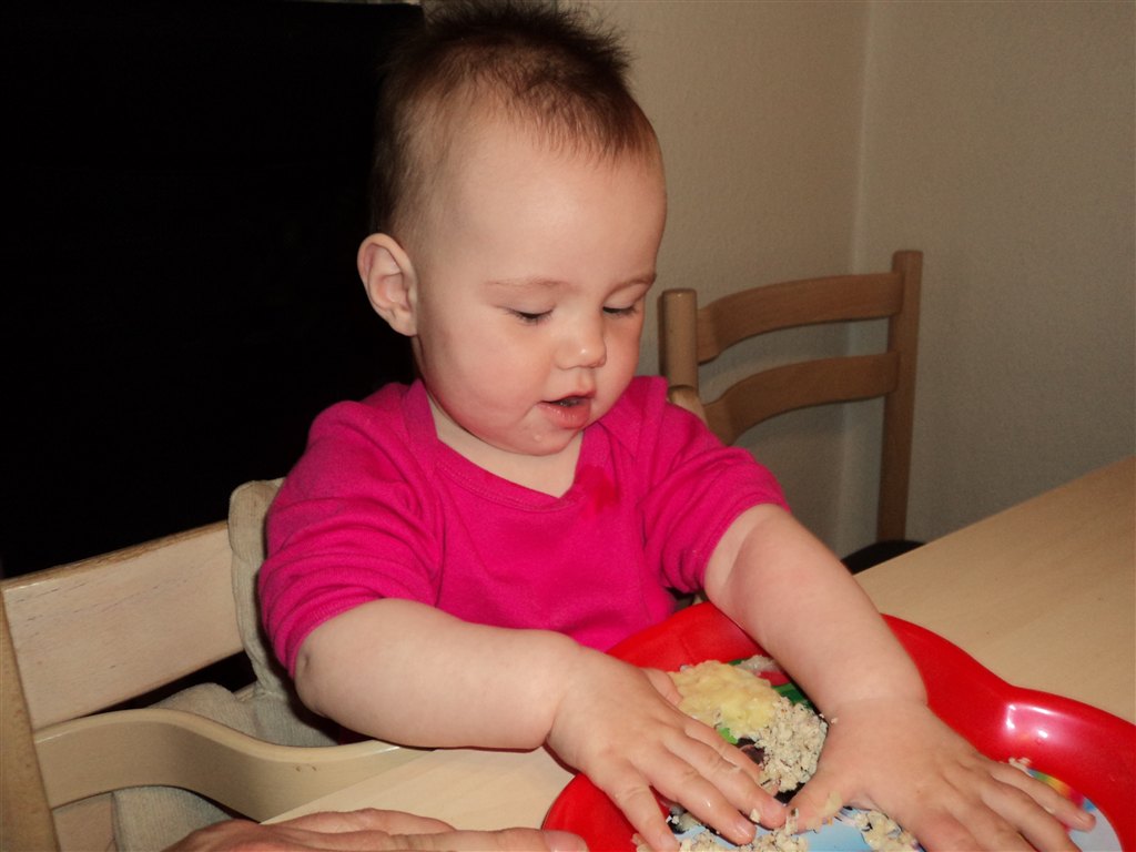 Hun kravler løs, og har gjort det i et par mdr, og rejser sig op af alt og alle.. Hun pludrer løs, og elsker Cecilie Frøkær