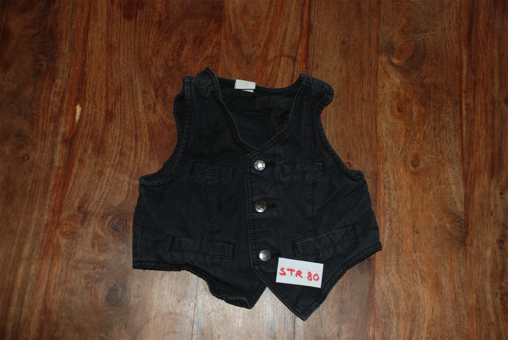Billed 1: Lækker grå vest med meget små sorte tern Str. 80. Mærke: h&m