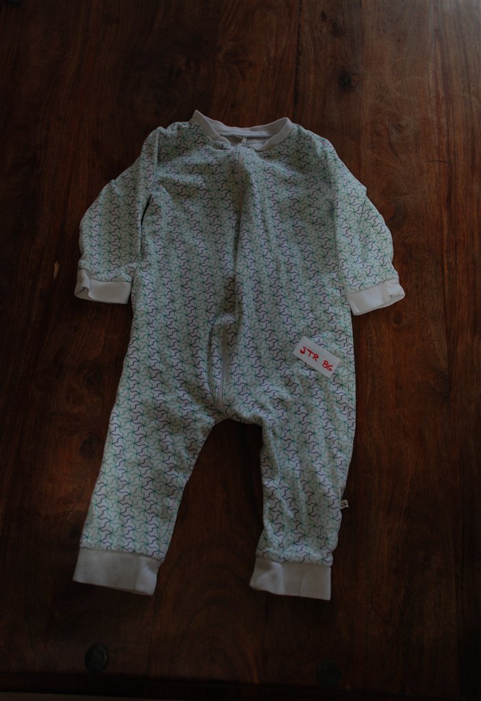 Billed 3: Hvid natdragt med blå og grønt mønster. Str. 86. Mærke: Pippi