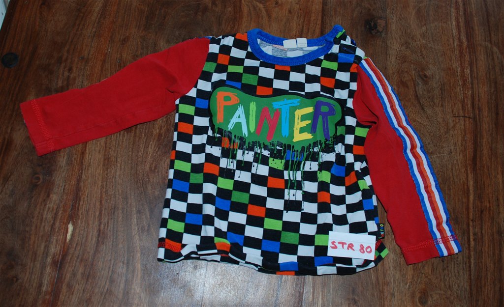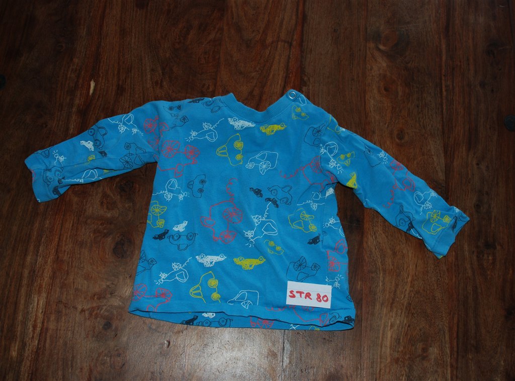Billed 4: Flot tyrkis blå bluse med bil mønster i flere farver. Str. 80. Mærke: name it
