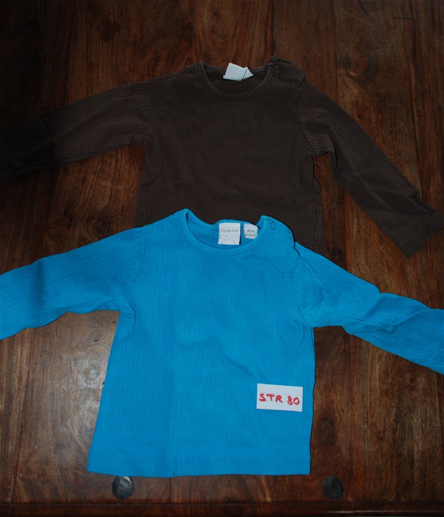 Billed 5: Tyrkis blå bluse. Str. 80. Mærke: Little one. Samt brun bluse str. 80 mærke: little one