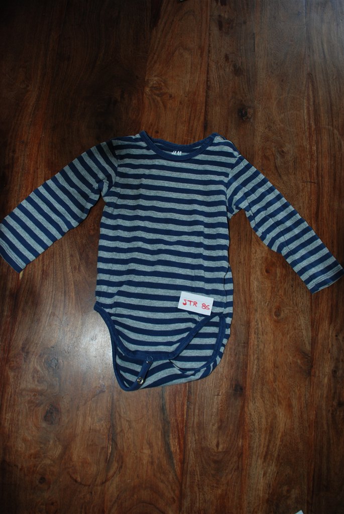 Billed 6: Blå og grå stribet body Str. 86. Mærke: h&m
