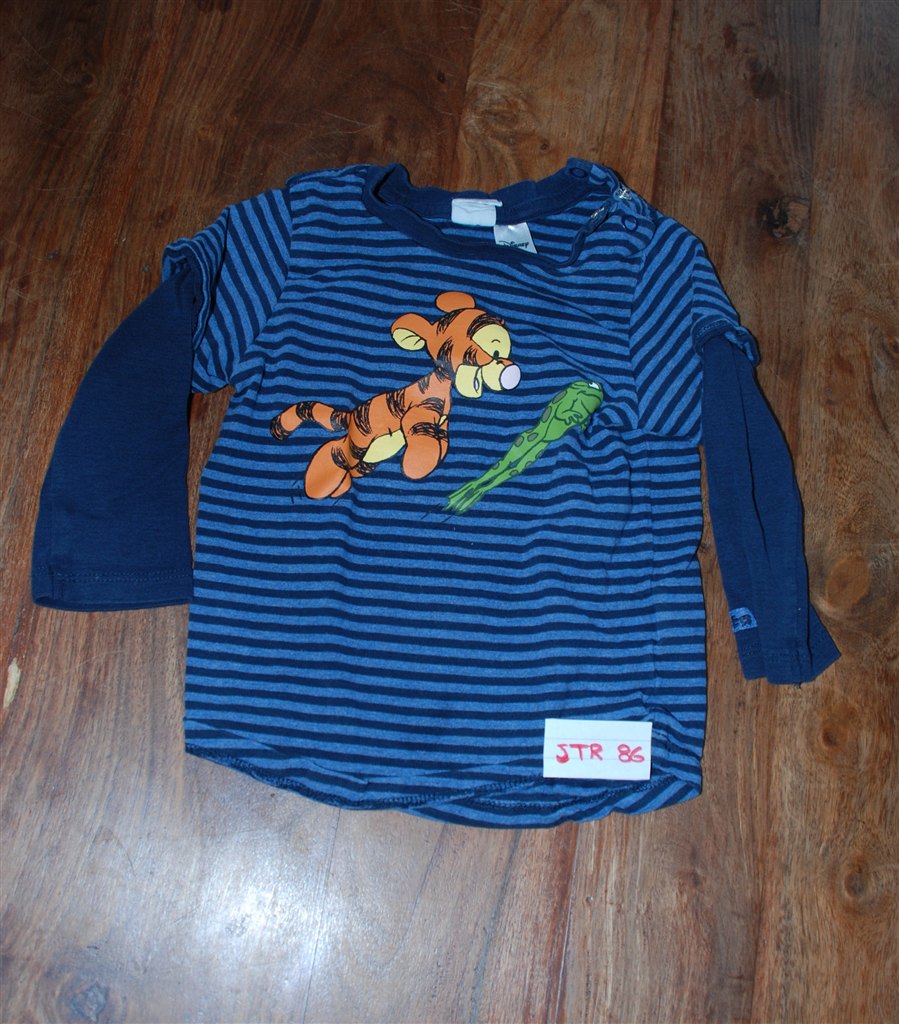 Billed 11: Blå stribet bluse med babytigerdyr. Str. 86. Mærke: h&m