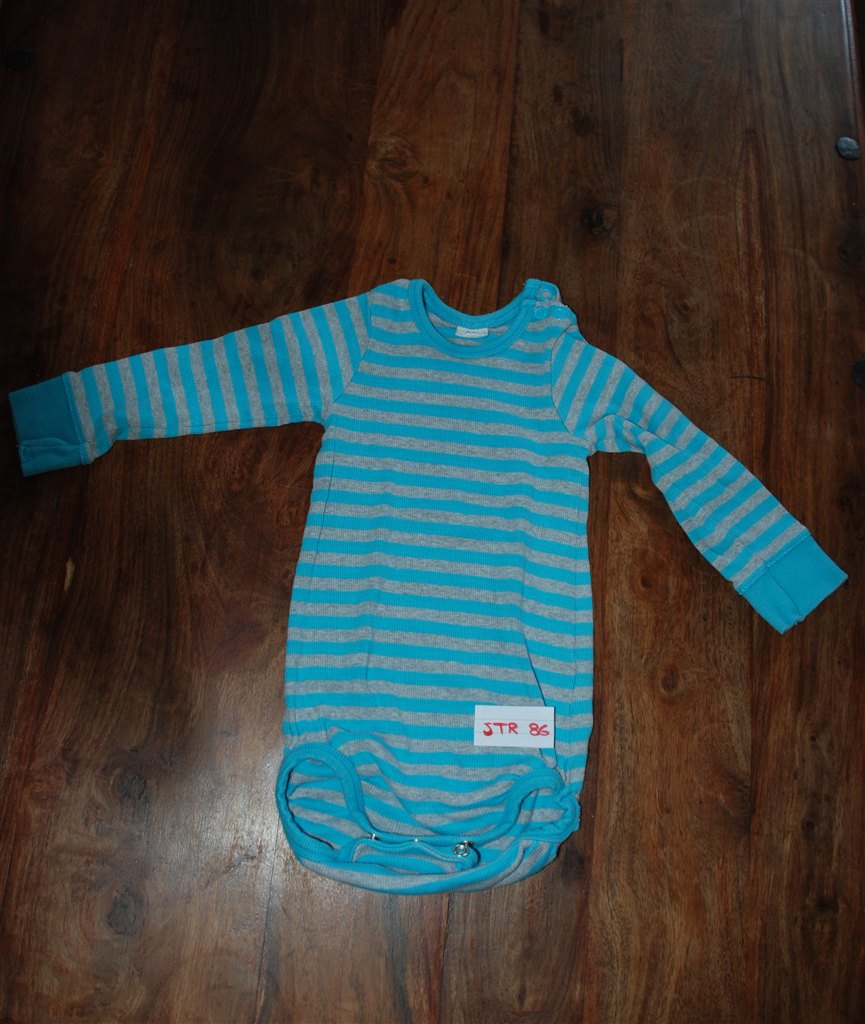 Billed 14: Grå og tyrkis blå stribet body. Str. 86. Mærke: h&m