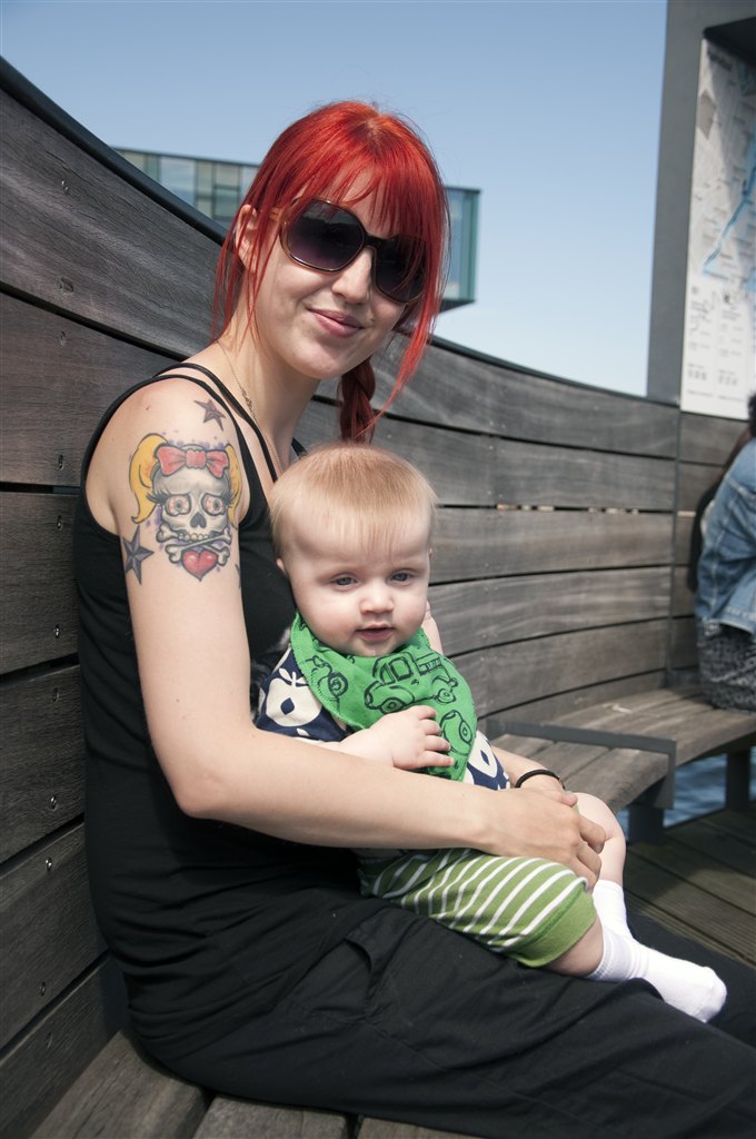 men da jeg skulle sætte ham i højstolen faldt han bagover da jeg skulle rette hans fødder ind hvor de skulle være, og GONK, så slår bassemanden hovedet lige ned i bordkanten. jeg fik en KÆMPE knude i maven og han begyndte at græde så op til mor og hen på sengen og trøste og trøste. heldigvis efter 1-2 minutter gik vi ud og kiggede i spejlet det elsker han og så grinte han bare over hele hovedet... så det var bare skønt at det ikke gjorde mere ondt..