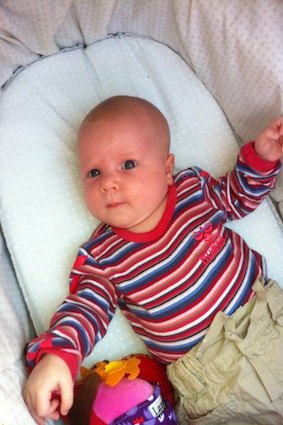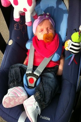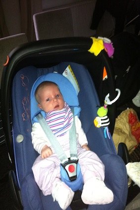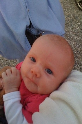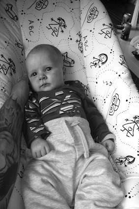 syns lige i skal se vores store pige. hun vokser alt for stærkt hun er begyndt at holde sit hoved selv nu og dreje sig om på siden også for vi da bare nogle af de dejligste smil.