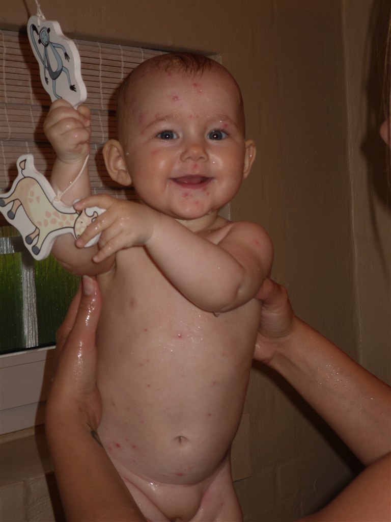 Jeg fik selv skoldkopper da min datter var 8 uger gammel, de første 4 dage måtte hun være hos min søster da jeg havde 41 i feber og ikke var i stand til nget, men hun blev ikke smittet selvom hun lå hud mod hud med mig