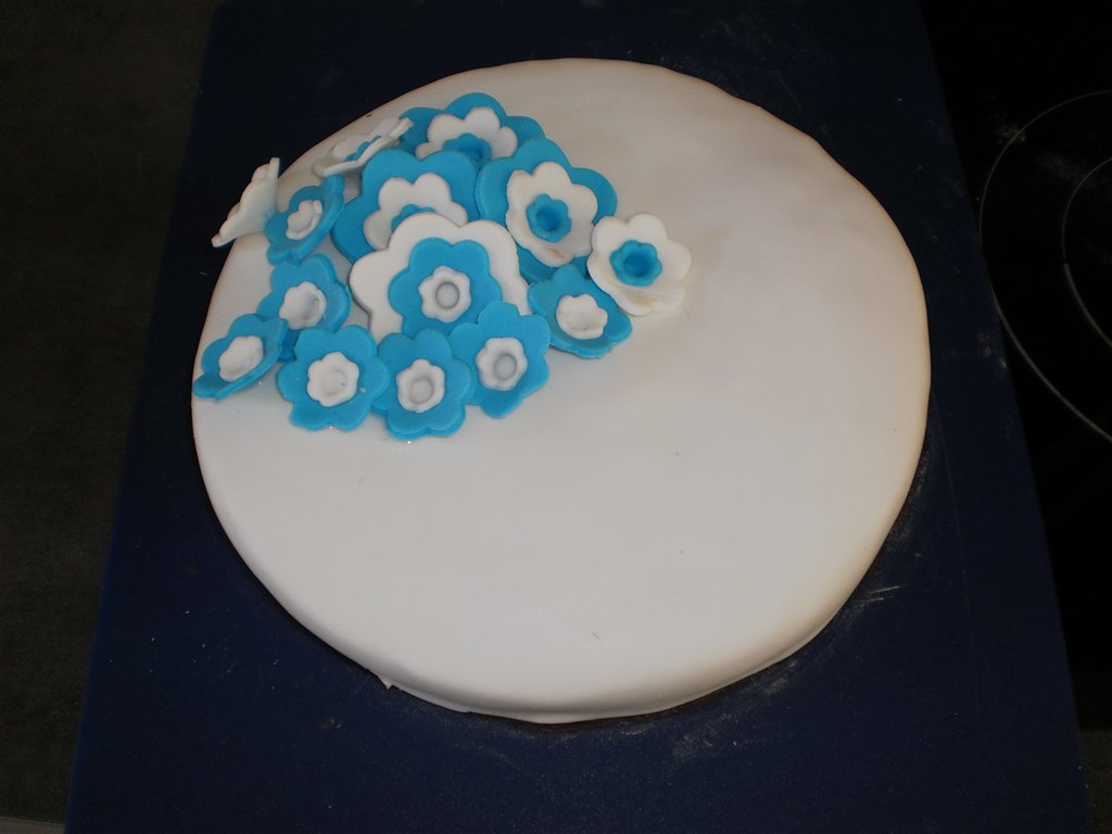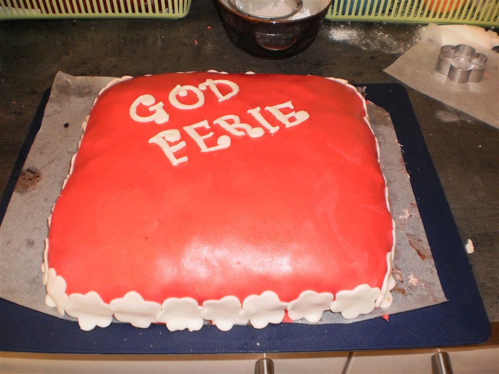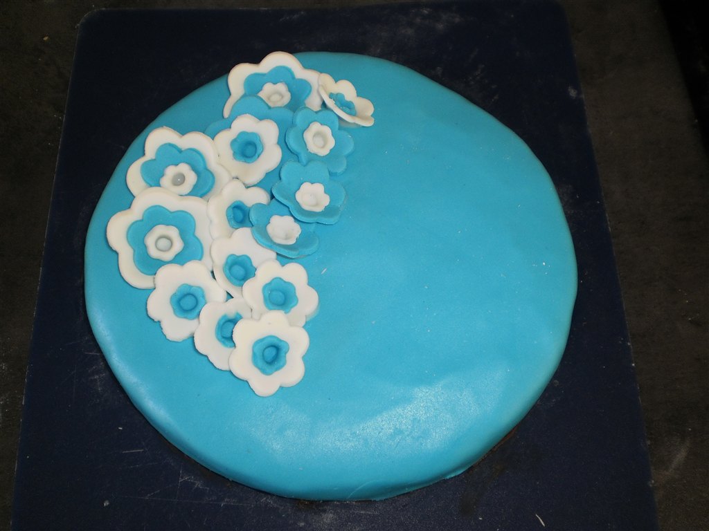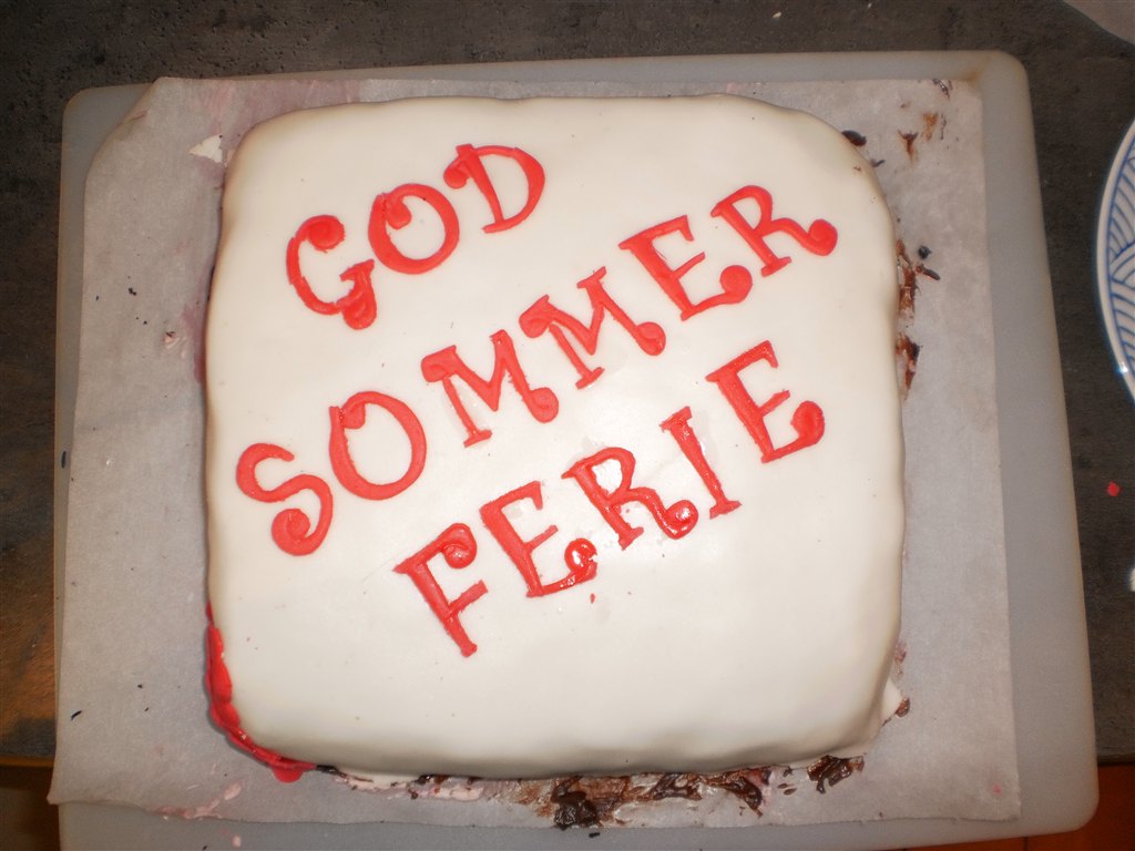 da min lillesøster så den til min lillebror ville hun gerne have en til afslutning i skolen (min mor kan ikke bage så hun har aldrig haft kage med) af resterne lavede jeg tre små kager (til henholdsvis min lillebror,en ven og min kæreste) den ene er ikke pyntet færdig på billedet.
