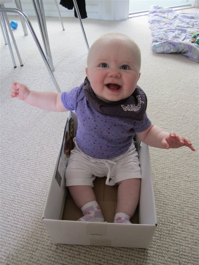 Hun prøver ihærdigt at kravle .. Men hun ryger kun baglæns :b Men hun er i kravlestilling næsten hele tiden .. Og så har hun næsten lært at sætte sig op selv