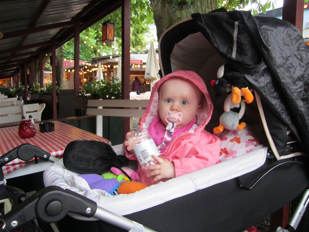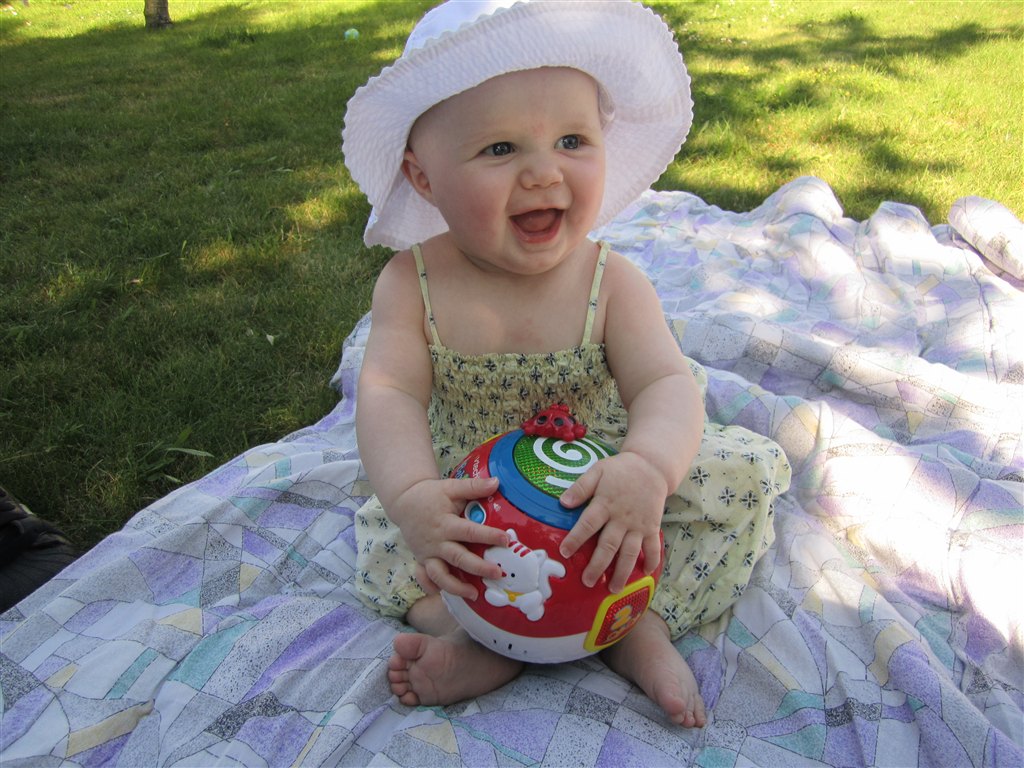 Hun sidder stabilt selv .. Det er MEGET sjældent at hun vælter .. Og hvis hun går , så griner hun
